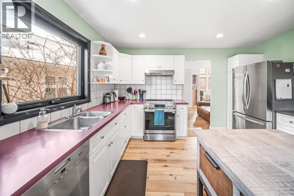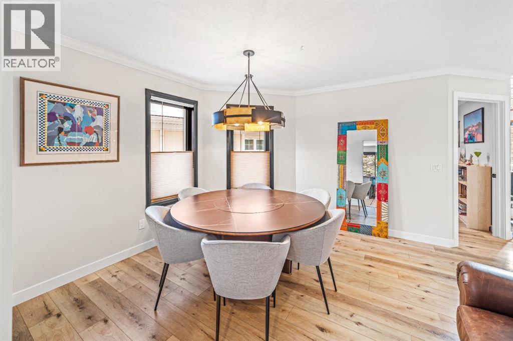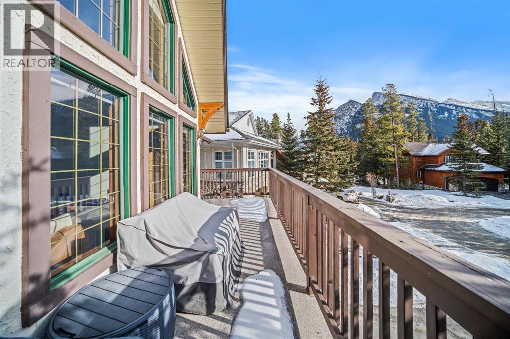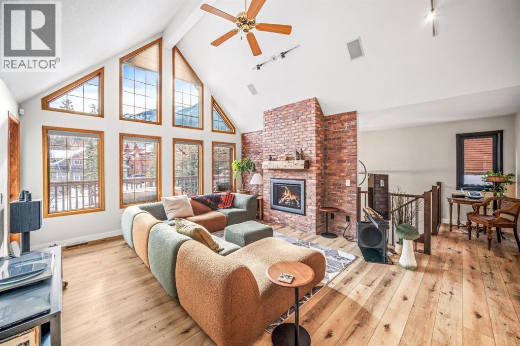 Single-family home in a highly sought-after location at the base of Sulphur Mountain in Banff. This south-facing, well-cared-for home is tucked into a quiet residential neighbourhood just steps from Bow Falls and a short walk to the iconic Banff Springs Hotel. Enjoy stunning views across the Bow River toward Sulphur, Rundle, and Cascade Mountains. The main living level is thoughtfully positioned on the second floor to maximize natural light and views. This level features a spacious primary bedroom with ensuite, a large great room with vaulted ceilings and a cozy fireplace, generous office, formal dining room, and a well-appointed kitchen. A sunroom and two balconies further enhance the indoor-outdoor living experience. The ground level offers a large family room, two additional bedrooms, a full bathroom, laundry, ample storage, and a double attached garage with workshop. This level walks out to a private, treed backyard—perfect for enjoying the natural surroundings. An exceptional property offering space, views, and an unbeatable setting. (id:6769)