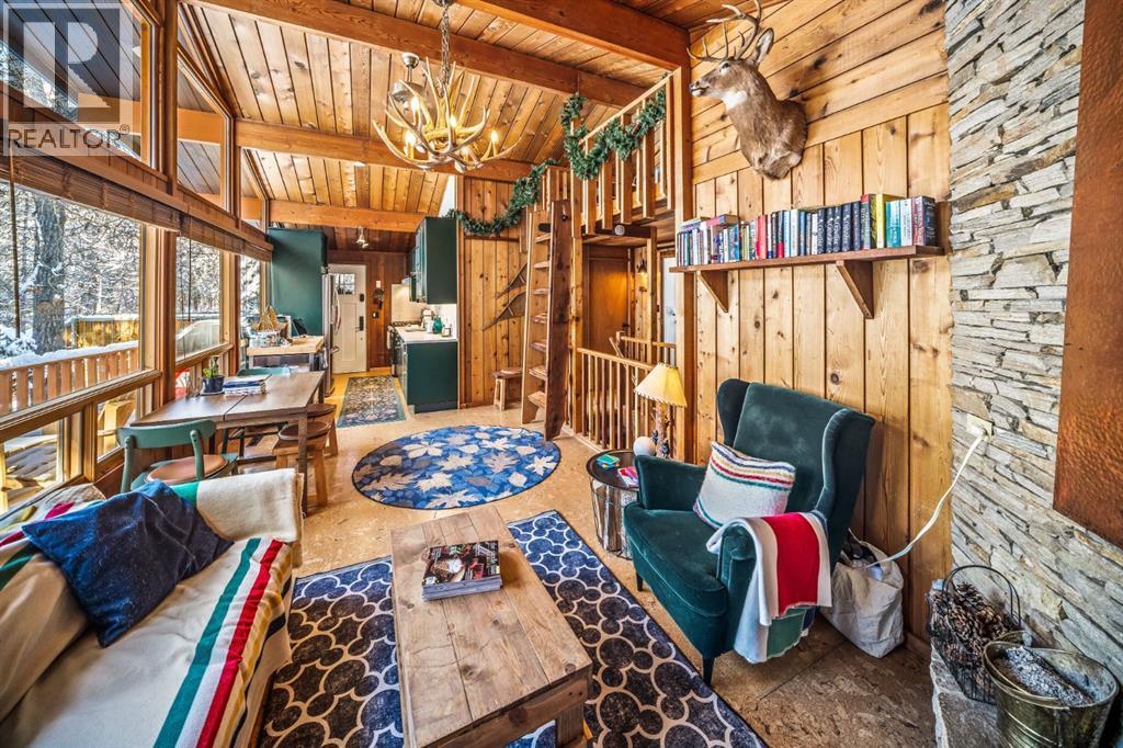 Tucked quietly into the trees at 126 Elk Street, this Harvie Heights cabin is a study in alpine nostalgia—an original mountain retreat thoughtfully reimagined for modern life. The architecture remains grounded in its roots, where timber, texture, and proportion speak to a slower, more deliberate way of living, while carefully executed updates bring comfort and ease.Importantly, Harvie Heights is not within the foreign buyer restriction zone, offering added flexibility for future ownership and long-term planning—an increasingly rare distinction this close to Banff National Park and the Bow Valley corridor.Inside, two bedrooms are joined by a sleeping loft—an elevated perch designed for children, guests, or quiet moments above it all. A full basement extends the home’s flexibility, offering space for movie nights, overflow guests, or a cozy retreat after long days outdoors. Throughout, the home balances authenticity and restraint, preserving the character that defines Harvie Heights while embracing contemporary functionality.Set on a 12,174 sq ft lot, the property enjoys rare privacy, framed by mature trees and mountain views, and backing directly onto a natural green space that deepens the sense of seclusion. Evenings are best spent outdoors—fire pit glowing, stars overhead, and the quiet presence of the surrounding forest. A detached shed provides practical storage for bikes, skis, and mountain gear, keeping the landscape uncluttered and purposeful.Just minutes from Canmore and moments from Banff National Park, Harvie Heights offers a rare duality: immediate access to world-class amenities and wilderness, without the intensity of town living. Linked by a walking and cycling path, yet distinctly its own, the hamlet remains one of the Bow Valley’s most authentic enclaves.Serviced by well water and septic, and offering future single-family redevelopment potential, this is more than a cabin—it’s a long-term foothold in one of the Rockies’ most quietly compelling se ttings. A place where design, landscape, and lifestyle converge with intention.Beyond the privacy of the lot, Harvie Heights reveals itself as a quietly self-contained enclave. Trailheads branch outward from the hamlet—largely unknown to visitors—offering immediate access to forested paths and ridge lines without the crowds. A tennis court, outdoor hockey rink, brand-new playground, and intimate community centre anchor daily life, creating spaces where neighbours naturally gather across generations. An optional community association further strengthens this fabric, providing annual updates on the shared water source beneath the hamlet, hosting local events, offering wildlife education, and guiding residents through the nuances of well and septic stewardship. The result is a sense of belonging that feels almost archival—an unhurried, deeply rooted community spirit rarely encountered beyond small mountain settlements today. (id:6769)