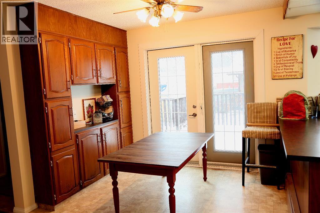 Nicely updated Family Home boasting quality craftsmanship with all the extras plus his and her Garages. You will feel at home as soon as you walk into the vaulted foyer through double doors, to the right is a large living room, to the left stairs leading to second level. This home is very spacious, 4 bedrooms & 4 bathrooms, and comes with many extras and oodles of storage space. The third bedroom is presently being utilized as the laundry room upstairs, but there are hookups for it in main floor Office/den as well. The choice of laundry area is yours. Both upstairs bathrooms have been renovated from the studs up and are luxurious with heated floors. Fully finished basement has an entire hidden wall of storage shelving and a huge recreation area with a mini kitchenette as well as a fourth bedroom plus a temporary firth bedroom, bathroom, and utility room. Lovely covered veranda in front which boasts spectacular views of Crowsnest Mountain and huge 60’ x 150’ yard with big deck providing views of Turtle Mountain. Patio area with fire pit in the rear. Many upgrades include new shingles, & windows in Master Bedroom in 2019, main bathroom in 2021. Downstairs bathroom just recently renovated with brand new shower. New shingles 2019, 2016 new hot water tank, changed pump, pressure tank & pop-up valve on hot water heating system.Attached 20’ x 22’ garage is completely finished, heated & has great built-in overhead storage. Second garage 28’ x 28’ is insulated, wired for 220VAC, LED overhead lighting, a four-post hoist, a service pit, plus two gas heaters - a forced air and an overhead.Ultimate location, with a very private backyard, and a short walk to all the amenities of downtown Blairmore, A short walk to Teck bus stop. Hoist could be optional.This house is a delight and a must to view. (id:6769)