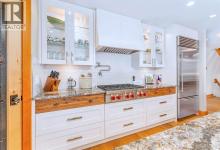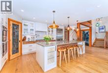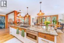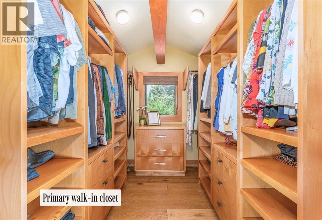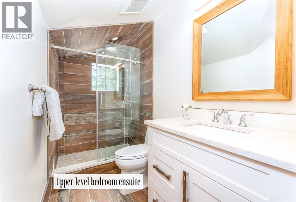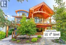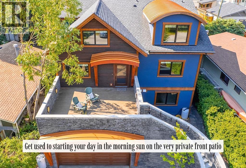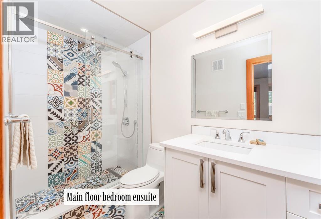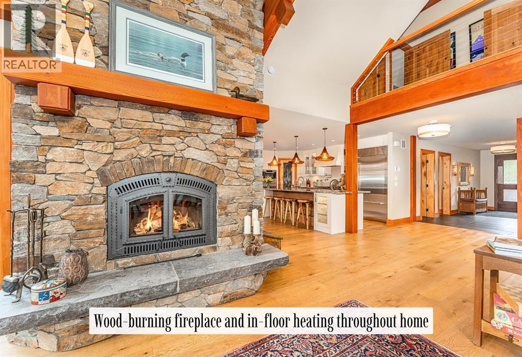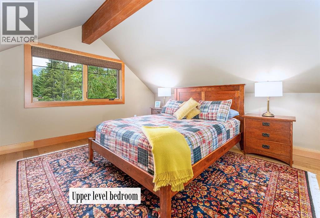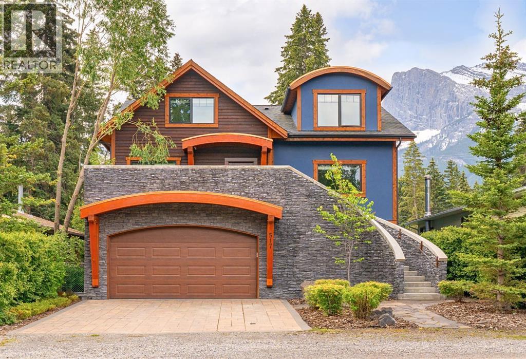 Welcome to an exceptional luxury home in the heart of South Canmore, where mountain living meets refined design in the most coveted neighbourhood in town. Framed by sweeping alpine vistas and set on quiet 4th Street, this remarkable 5-bedroom + office, 5-bathroom residence was thoughtfully designed as a forever home, perfectly balancing timeless architecture and generational functionality.From the moment you arrive, the home’s distinctive curved post-and-beam architecture makes a lasting impression. Graceful arcing rooflines echo the surrounding peaks, while the rich wood detailing creates a sense of warmth and permanence. Every line feels intentional, every space designed to evolve with you and your family through every stage of life.On the main floor, a serene bedroom with a full ensuite offers the ease of one-level living, ideal for guests or future accessibility. A built-in elevator connects every floor effortlessly—perfect for post-surgery recovery, limited mobility, or simply carrying groceries with ease. At the front of the home, a professional office provides a polished and private space to meet with clients, bathed in natural light and framed by peaceful neighbourhood views.The heart of the home unfolds in the breathtaking great room. A dramatic floor-to-ceiling wood-burning fireplace anchors the space, inviting cozy evenings as snow falls softly outside. Vaulted ceilings soar overhead, accentuated by curved timber beams that draw your eye upward—and outward—to the iconic Three Sisters. Walls of glass blur the boundary between indoors and out, filling the room with sunlight and ever-changing mountain moods.Step outside to spectacular outdoor living. The expansive south-facing deck is designed for every season: partially covered for year-round comfort, partially open for sun-soaked afternoons, stargazing nights, and front-row seats to the northern lights. Unobstructed views of Ha Ling Peak rise boldly before you, creating a backdrop that feels both d ramatic and deeply calming.Downstairs, the second living room is bright and welcoming, with high ceilings and a wall of windows looking out over the charming fenced yard where mature and younger trees create layered privacy. Get used to gathering around the firepit under a canopy of stars, or enjoy quiet mornings surrounded by birdsongs. The large front deck captures warm afternoon and evening sun, offering sweeping views across the valley to the Cascade and Lady McDonald ranges—an ever-changing landscape of light, shadow, and alpen glow.The luxury kitchen blends striking aesthetics with intelligent design. High-end (Wolf & Sub Zero) appliances, premium finishes, and thoughtful storage make it as functional as it is beautiful. The partially open-concept layout keeps conversations flowing between the kitchen, generous eating bar, and spacious dining room—perfect for lively gatherings, holiday dinners, or intimate family meals.Adding to the home’s versatility is the option https://youtu.be/ev5eKVHPU5o (id:6769)