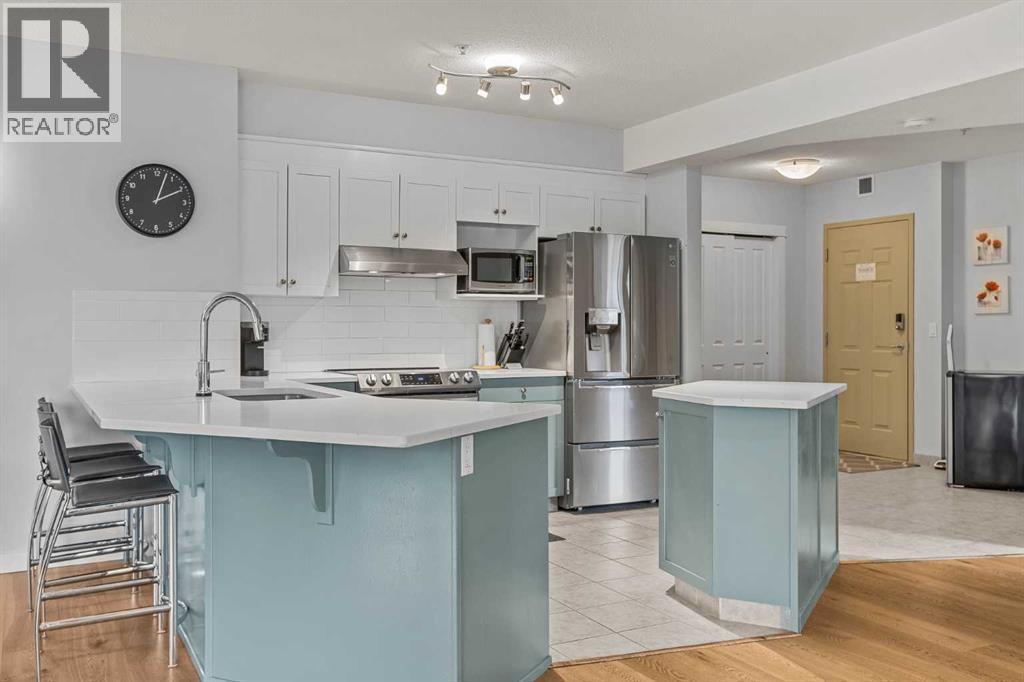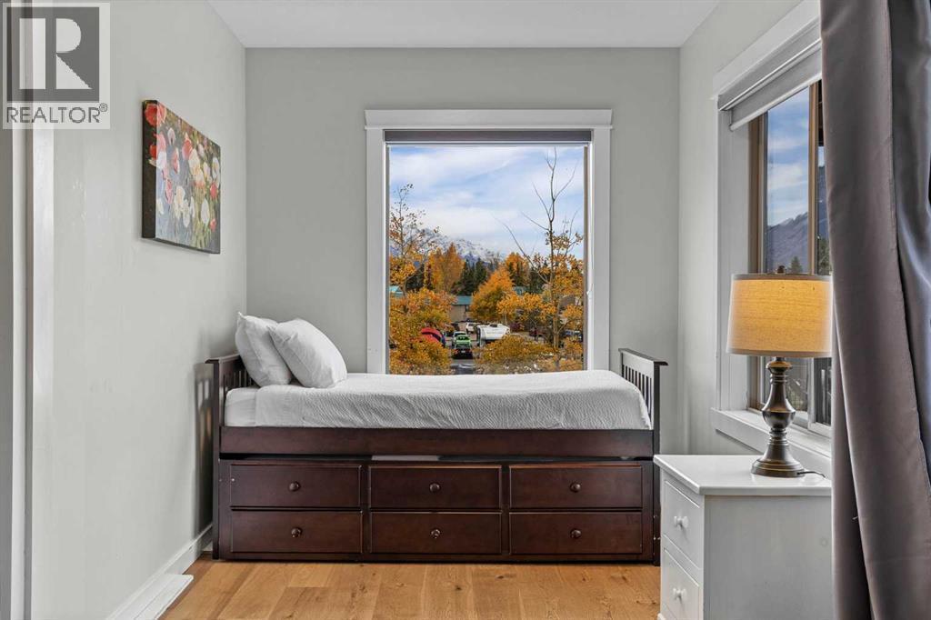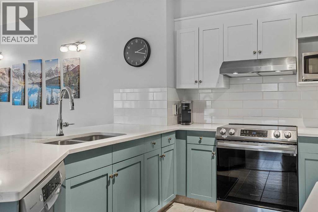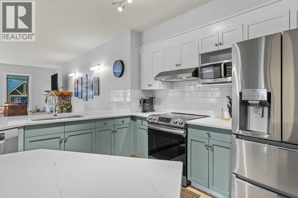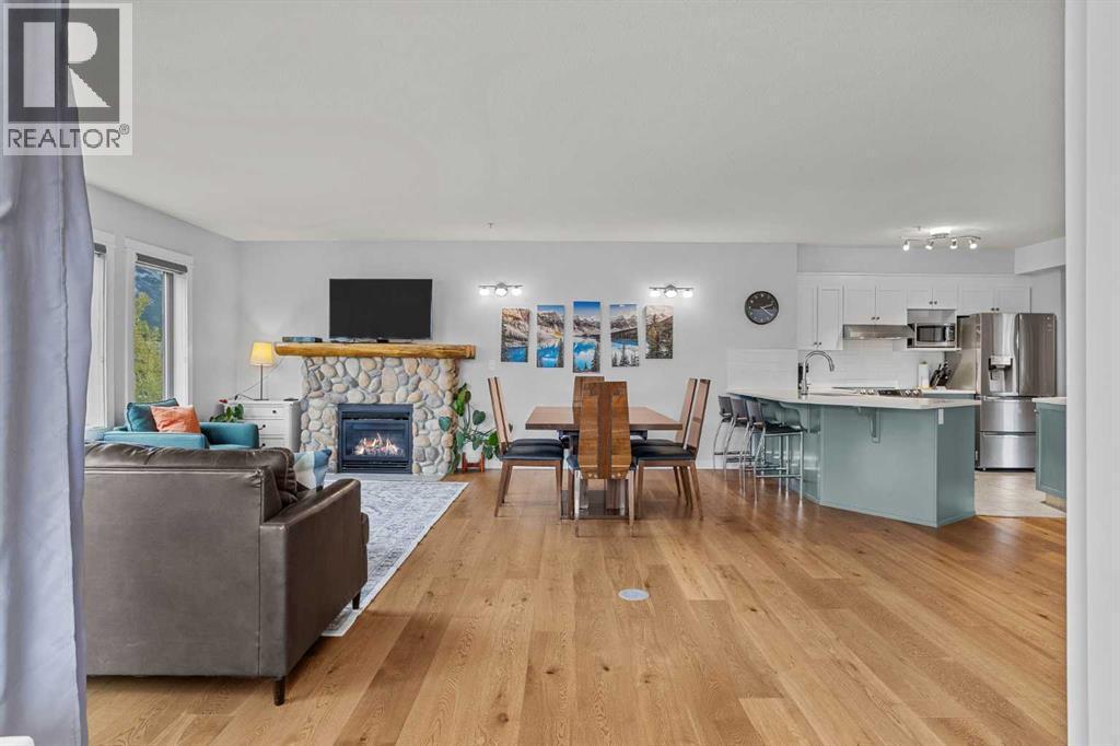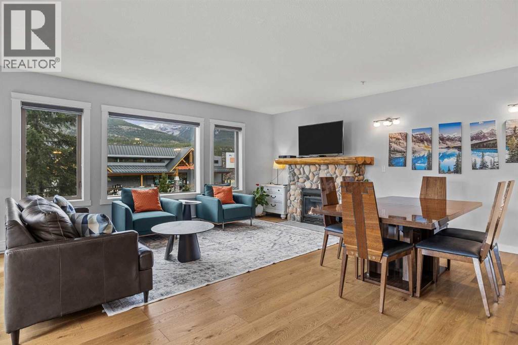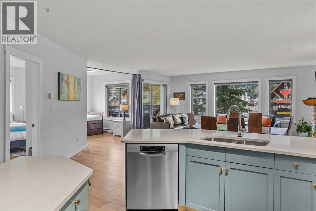 Wrap-around mountain views, rooftop hot tub, and legal tourist zoning — a rare combination. This bright corner unit offers 1,200 square feet and the flexibility to operate as a high-performing short-term rental or a full-time or lock-and-leave Canmore home. Thoughtfully renovated and fully furnished, this property is truly turnkey and positioned perfectly for the busy summer season. Currently configured as a two-bedroom plus den, the layout comfortably sleeps six and can easily function like a three-bedroom with the addition of a pull-out sofa — a simple way to expand nightly rates and overall revenue. Granite countertops, 2 tone cabinetry, durable vinyl flooring, and modern finishes deliver a clean, updated aesthetic that performs well with guests. Located in one of Canmore’s most sought-after STR buildings, this downtown address puts shops, restaurants, and trails right at your doorstep, with downtown just a block away. Owners and guests enjoy premium amenities, including a top-floor fitness room, underground parking and a stunning rooftop hot tub with 360-degree mountain views — a true differentiator in the short-term rental market. Whether you’re focused on cash flow, flexibility, or long-term value in one of the world's strongest STR markets, this property delivers. *List price is inclusive of GST -ask your tax expert how to defer the tax* (id:6769)