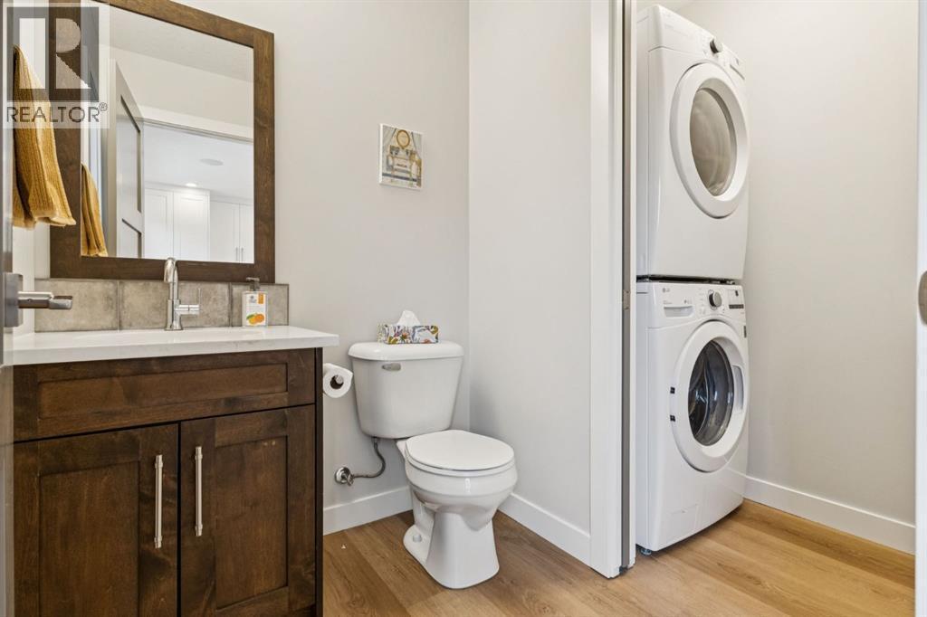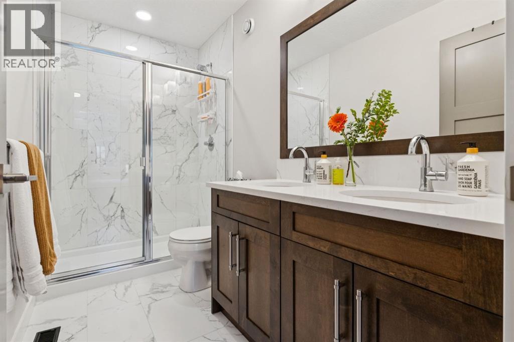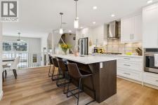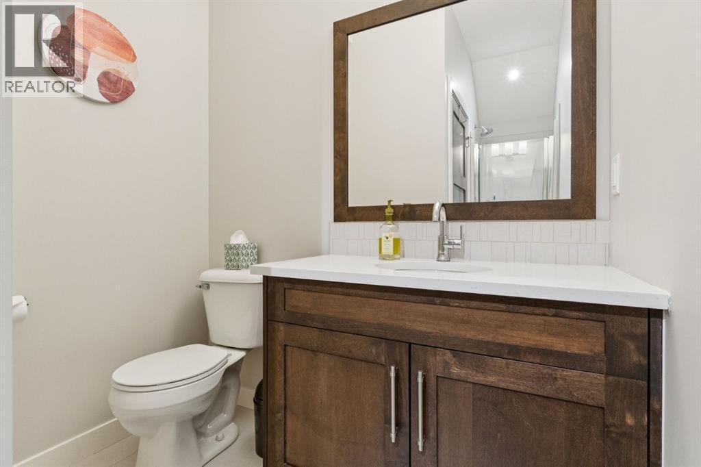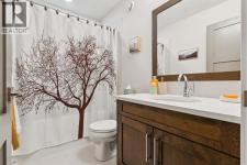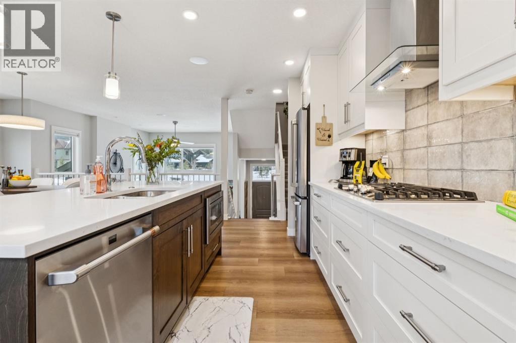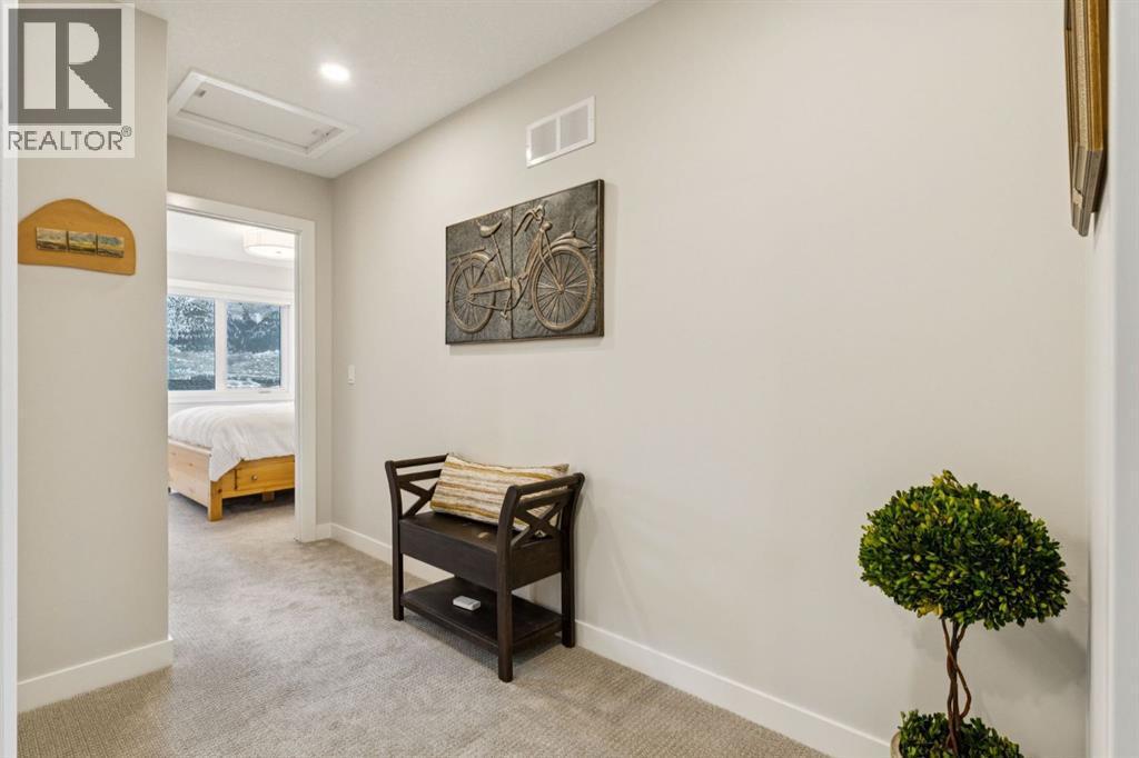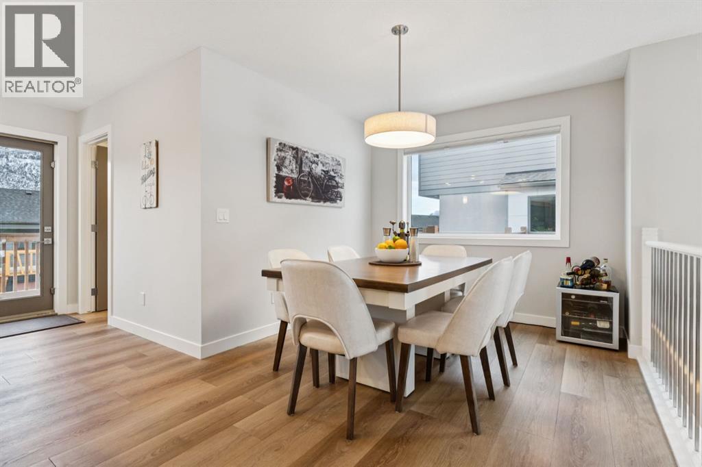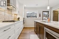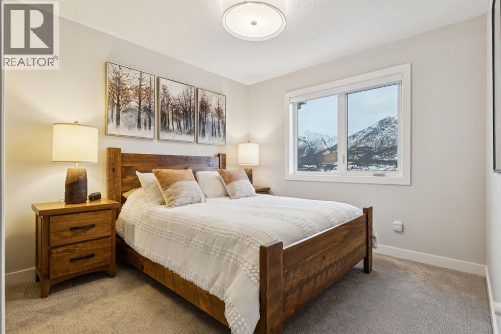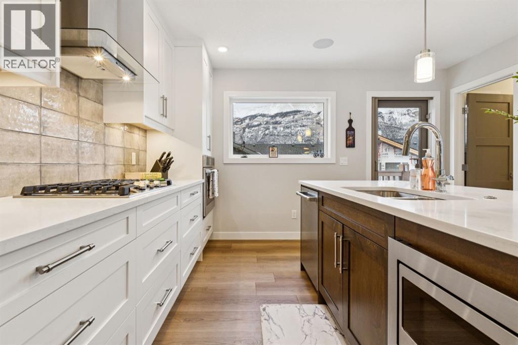 This thoughtfully designed, south-facing mountain home offers over 1,800 sq ft with a well-planned layout that maximizes natural light and mountain views. Expansive windows create bright, open living spaces throughout. The kitchen anchors the main level with GE Café appliances, a six-burner gas cooktop, convection oven, ample storage, and a large quartz island—well suited for gathering, hosting, or everyday use. A wrap-around deck with gas hookup extends the living space outdoors, offering flexibility for entertaining or quiet moments alike. The primary bedroom provides a private retreat with a four-piece ensuite and double vanity, while two additional bedrooms and a four-piece bathroom complete the upper level, making the layout ideal for families or guests. The lower level adds valuable flexibility with space for a recreation room, gym, or home office, along with a full bathroom. With thoughtful features including a built-in speaker system on the main level, Hunter Douglas blinds throughout, and a location near Stewart Creek Golf Course with easy trail access, this home delivers a balanced combination of comfort, functionality, and lifestyle—an opportunity to step confidently into mountain living. (id:6769)