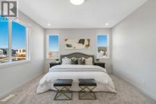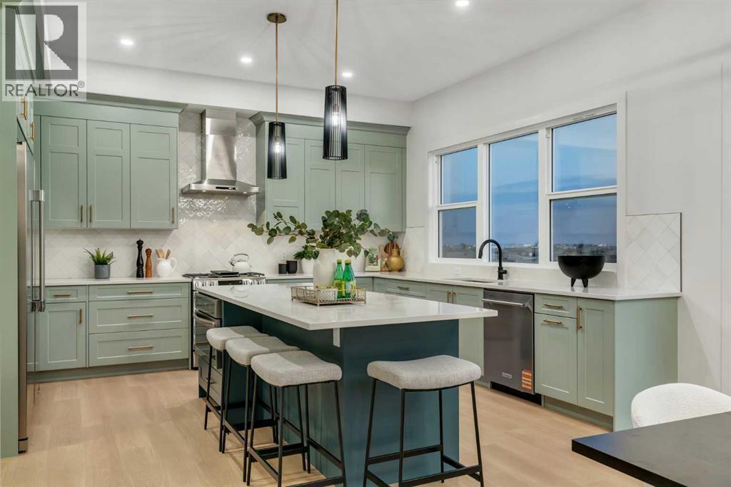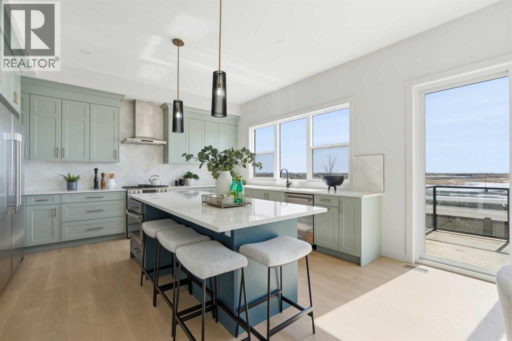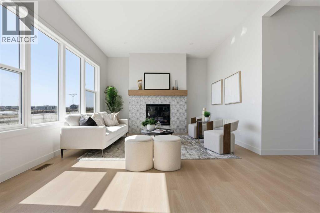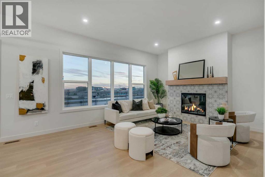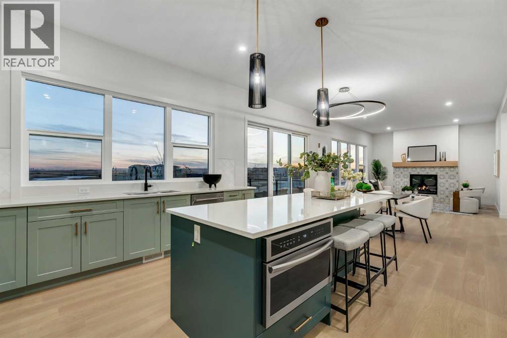 Open House April 12th, 1:30PM-3:30PM * Dreams come true! *Watch the Video * A fully finished designer estate home offering over 4,200 SQFT of functional living space, this residence is designed to impress at every turn. A luxury estate home that truly checks every box. This stunning showpiece by Aspen Creek Designer Homes, Alberta's one of Alberta's premier luxury builder showcases exceptional craftsmanship & stellar elevated finishings. Located in the growing estate community of Goldwyn, this home offers the charm of prairie estate living with breathtaking pond, downtown, & mountain views - Perfectly situated on a quiet cul-de-sac & no neighbours behind. OVERSIZED TRIPLE GARAGE | L-SHAPED LOT | 5 BEDROOMS + MAIN FLOOR DEN | 5 FULL BATHROOMS | SOUTH BACKYARD | POND VIEWS | EXCELLENT FINISHINGS | STUNNING CHEF'S KITCHEN | SPICE KITCHEN | SPACIOUS BACKYARD | 3 SPACIOUS BEDROOMS UP WITH ENSUITES | BONUS ROOM WITH PRIVATE BALCONY | FINISHED WALKUP 2 BEDROOMS BASEMENT | HARDIE BOARD SIDINGThe expansive triple garage along with aggregate driveway create a striking first impression. Step through the grand double-door entrance into a soaring open-to-below foyer filled with natural light. The main floor features 10-foot ceilings, 9 Ft doors, oversized windows, & a spacious living room with an elegant tiled fireplace detailing. A magazine-worthy, state-of-the-art chef’s kitchen offering that aura your guests are going to love - timeless cabinetry with gold hardware, glossy backsplash, top-of-the-line appliances including an oversized refrigerator, gas cooktop, chimney hood fan, & built-in microwave. A massive centre island with blue cabinetry provides the perfect gathering space, while the fully equipped spice kitchen adds both style & function.A versatile main floor den with a French glass door sits beside an upgraded full bathroom— ideal for guests, multigenerational living, or a private home office. A generous mudroom offering ample space for a secondary home office. Wa lking upstairs along the grand wide staircase with designer railing, you'll notice the 9 FT ceilings & 8ft doors followed by a sun-filled central bonus room opens onto a private balcony overlooking the pond. Three spacious upstairs bedrooms each feature their own private ensuites - no compromises whatsoever. The primary suite is a true retreat, enhanced by extra windows, a huge walk-in closet, & a luxurious spa-like ensuite complete with a soaker tub, glass shower with upgraded tile surround, dual sinks, & a private toilet.The two additional south-facing bedrooms enjoy stunning pond views & upgraded attached bathrooms, offering comfort & privacy for family or guests. A massive laundry room with cabinets and tiles Step outside to a huge south-facing backyard that feels like a private summer retreat - ideal for entertaining & relaxing with your family. Dual Furnace Zoning & 72 Gal HWT adding to the efficiency. A fully upgraded over 4200 SQFT luxury home in an estate location. (id:6769)