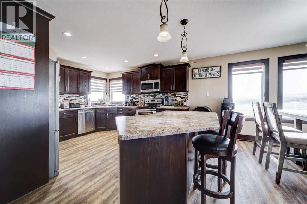 If you have been searching for a small acreage near Pincher Creek with a beautiful home and room for a horse or two, this property may be a perfect fit. The well-maintained Jade Home, built in 2015, has three bedrooms and two-and-a-half bathrooms, and is fully finished for your convenience. The home is thoughtfully positioned to maximize the breathtaking mountain scenery, from Chief Mountain in the south all the way to the Livingston Range in the north. Large floor-to-ceiling windows and a spacious deck create ideal spaces to take in these stunning panoramas. Constructed with an ICF foundation, the walk-out lower level of the home is both warm and quiet, while boasting the same gorgeous mountain views as the main level. This foundation ensures energy efficiency and comfort throughout the year. The property includes a double detached garage with radiant heat, offering ample space for storage, hobbies, or simply keeping vehicles warm during colder months. The well is equipped with a newly installed pump and is connected to an underground 1,500-gallon cistern, complete with a convenient float system for monitoring and filling, if necessary. The fenced pasture has a 12’ x 8’ animal shelter and a faucet for watering. Located less than two miles from town, this 3.96-acre property offers the perfect blend of rural living and close proximity to local amenities. It is truly worth viewing—contact your favourite REALTOR® to arrange a showing today! (id:6769)
