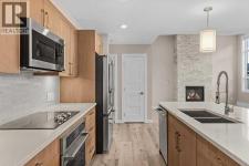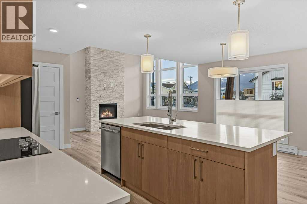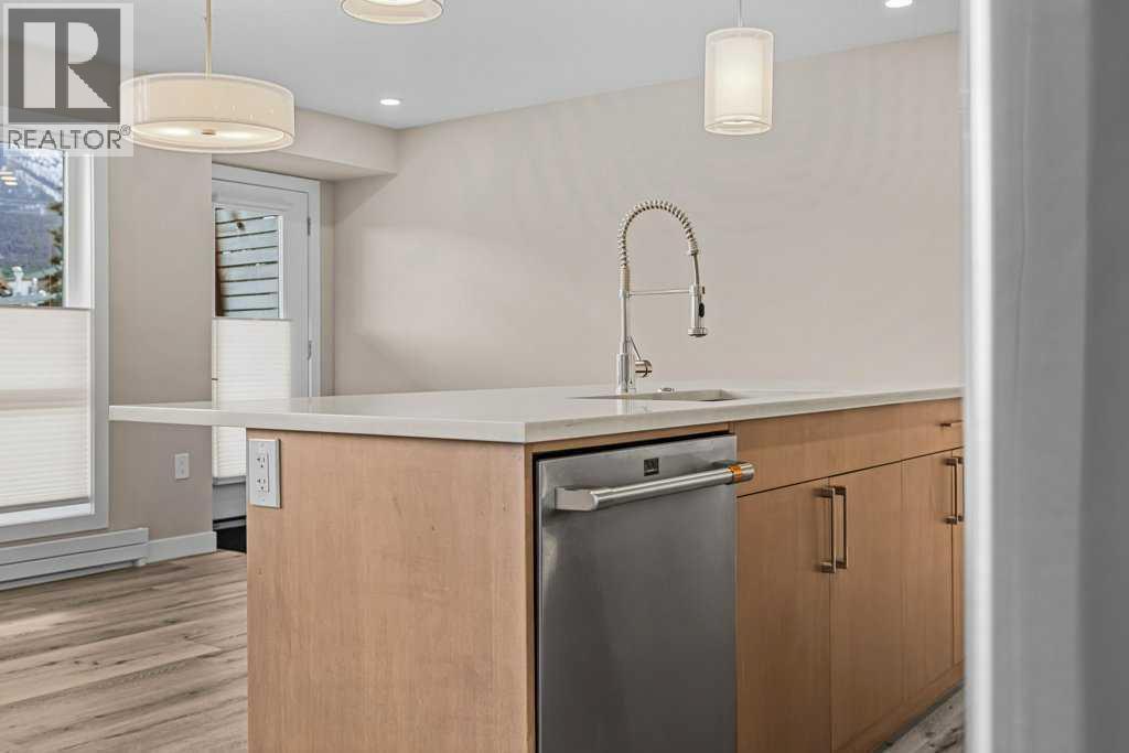 Welcome to the coveted Residence at 7th & 7th! This stunning one-bedroom condo is located just one block from Main Street, offering easy access to shops, galleries, restaurants, and pubs. This beautifully designed home features vaulted ceilings and expansive south-facing windows that flood the space with natural light and showcase outstanding mountain views. Wake up to views of the iconic Three Sisters! The open-concept layout includes a spacious great room with a stylish kitchen complete with quartz countertops, pantry, and upgraded GE Café appliances—plus the convenience of remote oven start for busy days. The condo offers two private entrances: one from the interior courtyard and another from your own balcony overlooking 7th Street. You can be out on the trails or down to the river in seconds!! Ideal for the career professional, working remote, or those that desire a mountain lifestyle. Additional highlights include titled underground parking and a dedicated storage area. A perfect blend of comfort, convenience, and mountain lifestyle living. (id:6769)