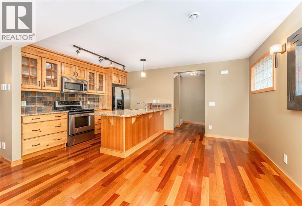 Located on a quiet street in one of Canmore’s most sought-after neighbourhoods. This beautifully maintained 2 bedroom, 2 bathroom townhome offers a perfect blend of comfort, views, and walkability. With only one owner since new, the home has been lovingly cared for and includes a notably healthy reserve fund and a much larger square footage of living space than many newer builds today. Functional and Comfortable: Featuring 2 assigned parking stalls, and a very handy storage room under the stairs on the ground floor both provide the functionality. A bright and airy open-concept living area, cozy gas fireplace and beautiful mountain views are the comfort and relaxation part. The nicely appointed kitchen with plenty of cabinetry, counter space and handy eating bar, is a little bit of both! Upstairs, both spacious bedrooms feature vaulted ceilings that bring in natural light and mountain views. Step out onto one of two balconies to enjoy your morning coffee or evening glass of wine surrounded by the Canadian Rockies.Located just a short walk from the shops, dining, and charm of downtown Canmore, while you can also stroll to the parks, river, and trails. Contact us to view today. (id:6769)