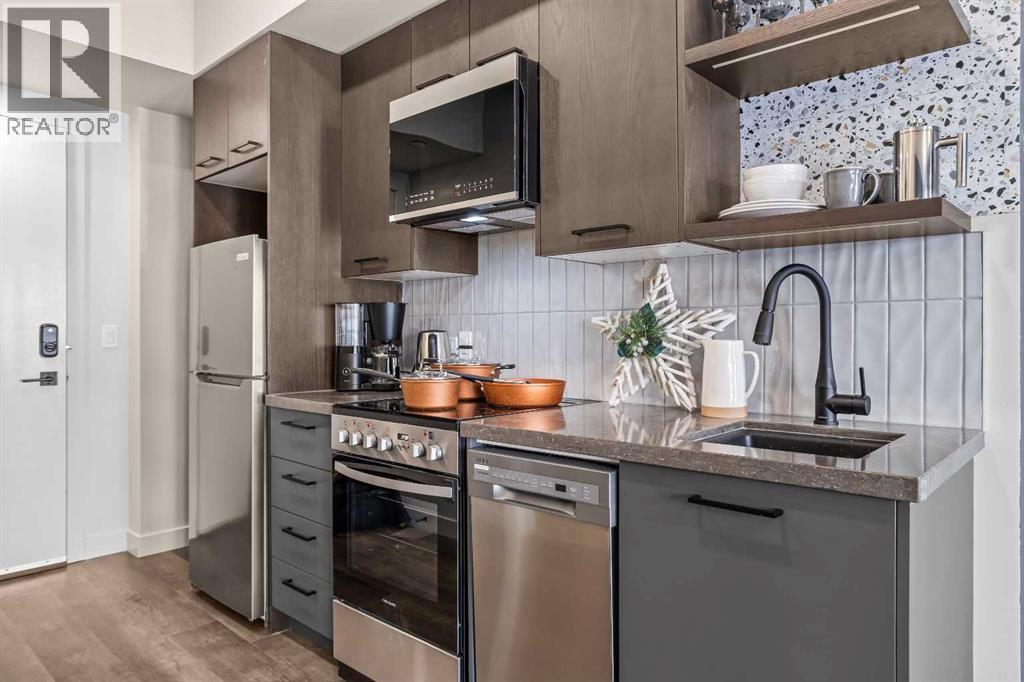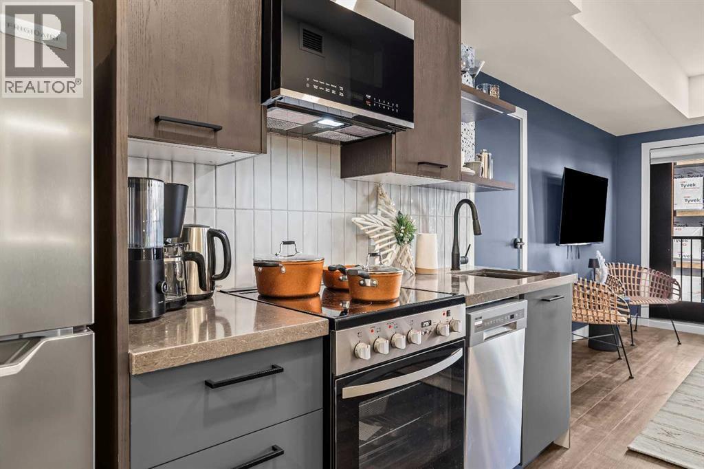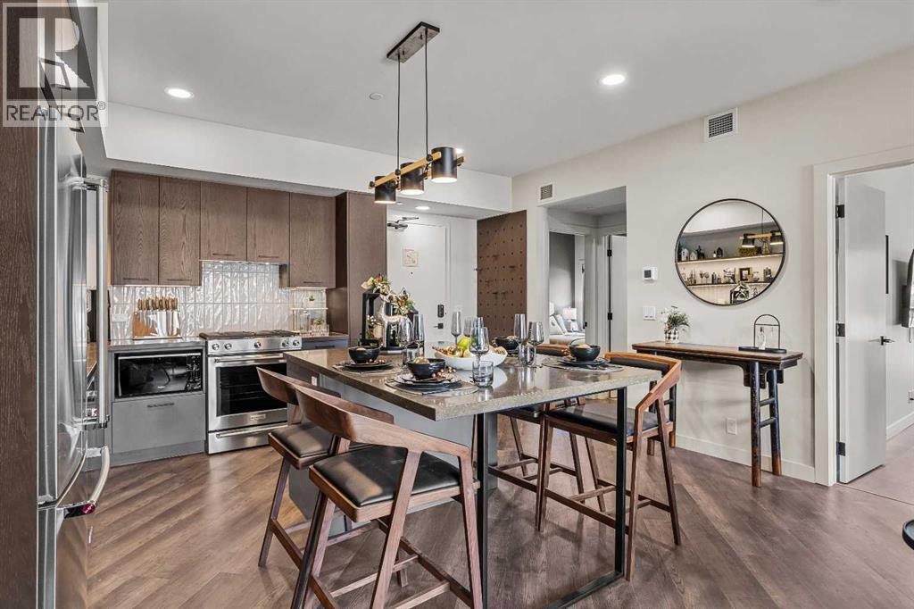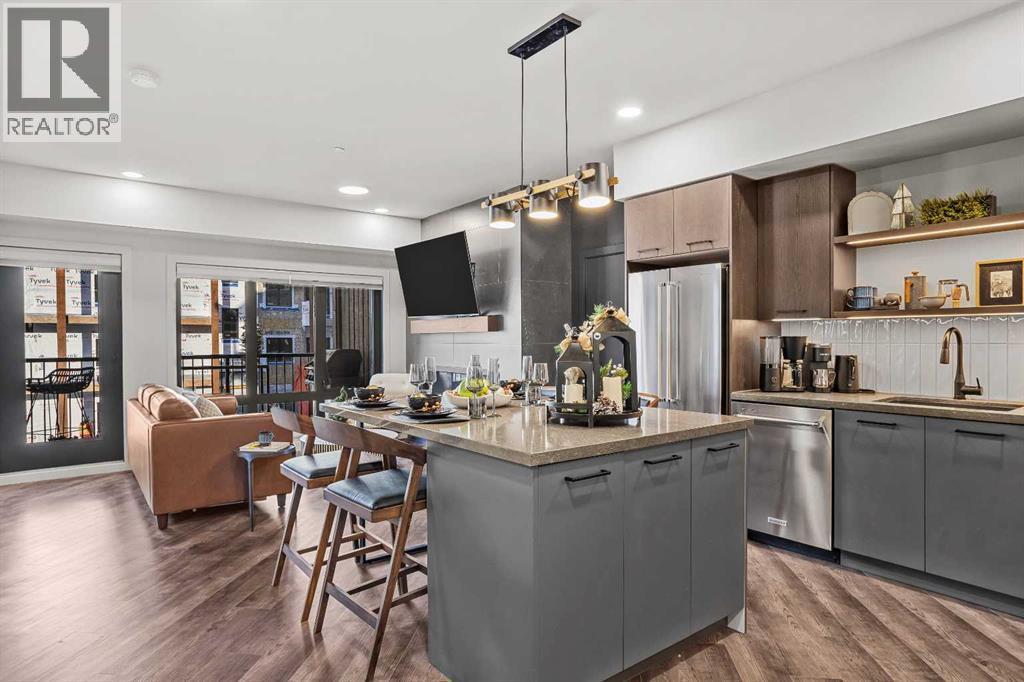 Brand new three bedroom, three bathroom lockoff residence in Ascent Canmore, Canmore’s newest luxury mountain development, offering exceptional flexibility, comfort, and long term appeal. This intelligently designed home can be enjoyed as a full three bedroom residence or separated into a two bedroom suite plus a fully self contained lockoff studio with its own full kitchen, creating excellent options for personal use, hosting guests, or short term rental opportunities. Stunning south facing mountain views can be enjoyed from every window, while three private decks provide the perfect place to relax and take in the surrounding scenery throughout the seasons. The bright open concept layout features a well appointed kitchen with island seating, generous dining space, and a welcoming living area, all designed to flow seamlessly and maximize natural light. Over $80,000 has been invested in luxury upgrades including high end furnishings, kitchenwares, custom window coverings, and professionally curated décor, making the unit completely turnkey and ready for immediate enjoyment. Thoughtful details such as secure owner storage, excellent bedroom separation, and three full bathrooms enhance both functionality and privacy. Ascent Canmore offers resort style amenities including an outdoor swimming pool and hot tub where you can unwind while enjoying mountain views, as well as a spacious and fully equipped fitness center. Underground parking and a dedicated storage locker provide year round convenience. This lockoff configuration is well suited to Canmore’s short term rental environment while still offering a refined and comfortable mountain retreat. CONSULT YOUR ACCOUNTANT ABOUT GST DEFERRAL (id:6769)