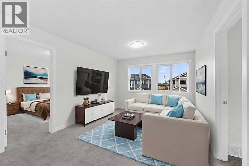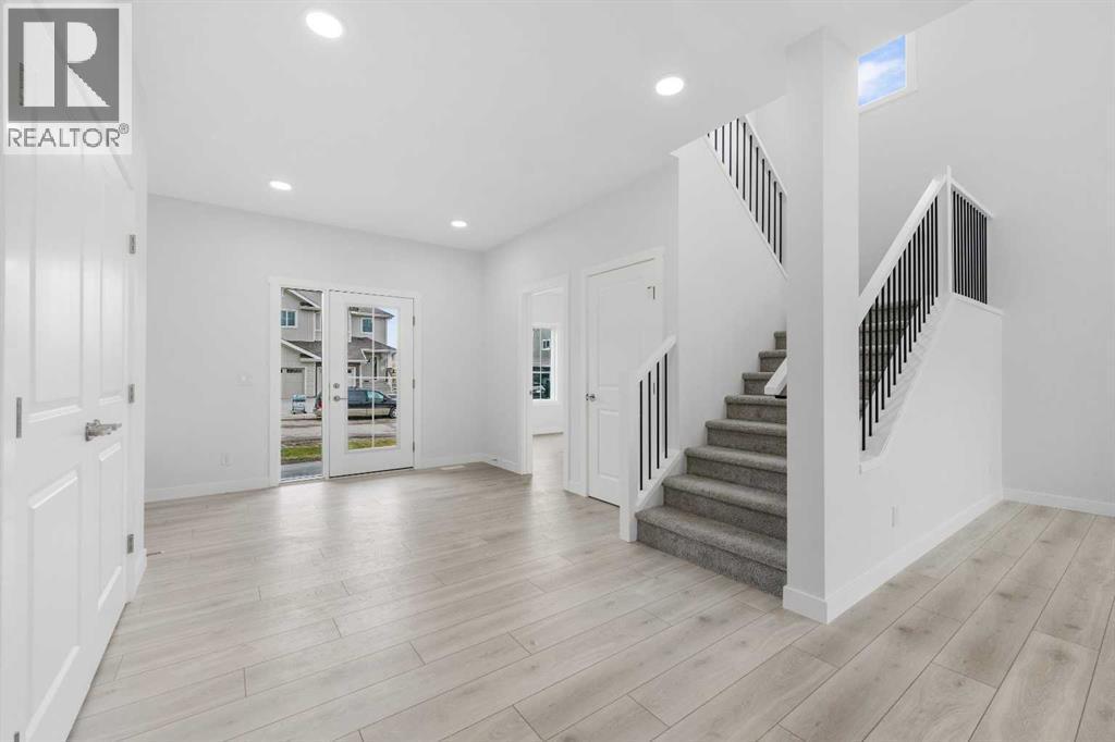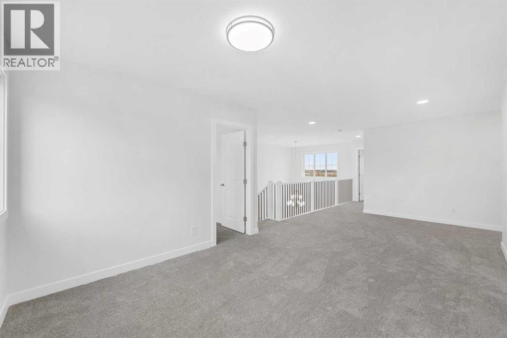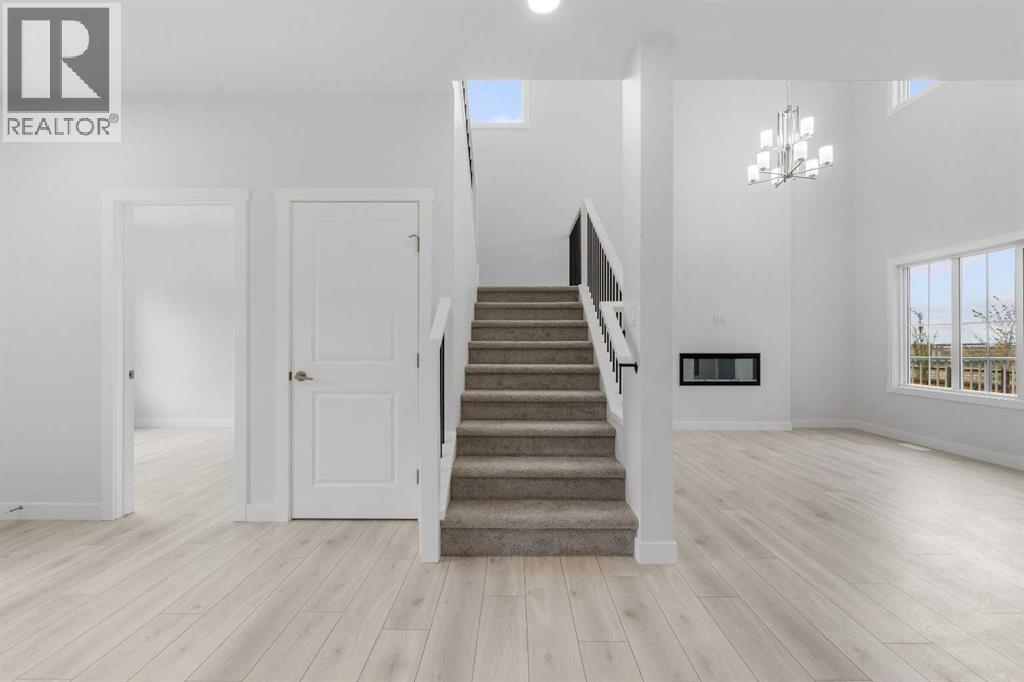 MODERN DESIGN!! FAMILY-FRIENDLY LAYOUT!! PRIME BALZAC LOCATION!! Step into a bright, open main floor featuring a welcoming living area with electric fireplace, spacious dining area with direct backyard access, and a beautifully designed kitchen with large island, built-in features, pantry, and extensive cabinetry. A main floor office adds everyday flexibility for work, study, or guests. Upstairs offers 3 bedrooms, 2 full baths, a family bonus area, and convenient upper-level laundry. The primary retreat includes a walk-in closet and luxurious 5-piece ensuite, while the other two bedrooms share a full 4-piece bath. The basement includes a separate entrance for future development potential. Rare oversized double attached garage with parking for three vehicles plus direct backyard access through a man door. Located in the growing community of Goldwyn, Balzac — minutes to CrossIron Mills, close to schools, and quick access to major routes. THIS IS THE KIND OF HOME YOU DON’T WAIT ON — BOOK YOUR SHOWING TODAY!! (id:6769)