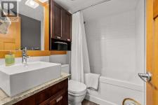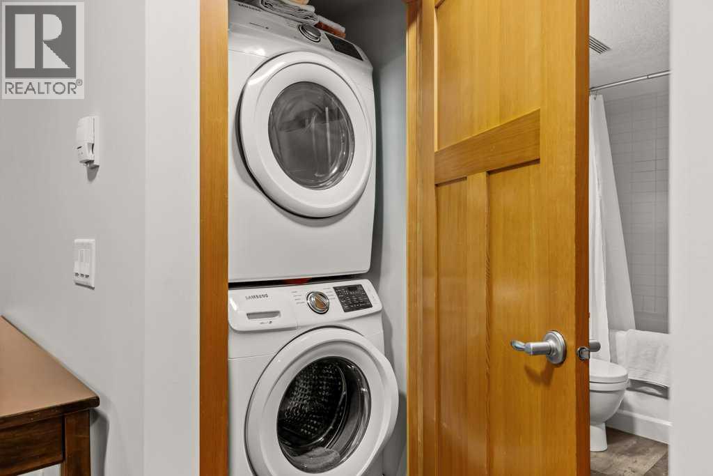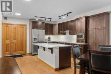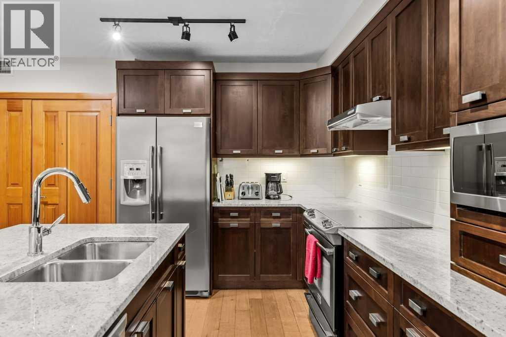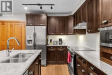 This inviting 2-bedroom, 2-bath residence offers 921 sq. ft. of thoughtfully designed living space, blending comfortable gathering areas with private retreat zones. Beautifully upgraded throughout, the home features a modern kitchen and bathrooms enhanced by custom wood cabinetry and quality finishes that add warmth and character. Sold fully furnished, this turn-key property is ideal for personal or family use, or as a long-term rental mountain retreat. You will love being able to entertain in the main living area which seamlessly blends living space with meal prep and dining – perfect for building memories! The primary bedroom serves as a relaxing sanctuary complete with an updated ensuite, while the den’s murphy-style bed allows that space to function seamlessly as both a home office and an additional bedroom. Located in the highly sought-after Serenity Ridge development in Stewart Creek, residents enjoy a quiet, peaceful setting with easy access to walking and biking trails, golf, shopping, and schools. The building offers excellent amenities including secure underground parking, onsite storage, a hot tub, and an owner’s lounge. With its stylish design, flexible layout, quality finishings, added storage, and exceptional location, this move-in-ready home deserves a place on your short list—come see for yourself: the Canmore lifestyle is calling you “HOME”. (id:6769)