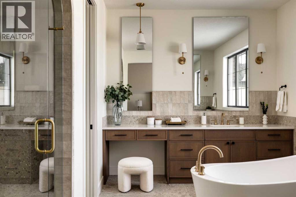 A Feng Shui + Vastu approved floor plan that blends positive energy with practical design. Perfect flow, balancedlayout, and built for a lifestyle that feels right the moment you walk in. Welcome to The Blaire in Goldwyn—a home that doesn’t just sit on a lot, itclaims a breathtaking position backing onto a ravine, with sweeping views that redefine estate living. With more than 6,700 sq. ft. of total livingspace, this residence is as much about lifestyle as it is about design. The main level delivers moments worth gathering for: a chef’s kitchen withoversized island, a full spice kitchen for elevated entertaining, a formal dining room, and a sun-drenched sunroom overlooking nature itself. The greatroom, with its soaring ceilings, feels nothing short of cinematic. A study/library, prayer room, and thoughtfully designed mudroom bring balance tothe grandeur. Upstairs, the primary retreat is your personal sanctuary: a spa-inspired 5-pc ensuite, an expansive walk-in closet, and access to aprivate 29’ balcony with uninterrupted ravine views. Three additional bedrooms—each with its own ensuite and walk-in closet—offer both luxury andprivacy, while a bonus room and upper laundry make daily living effortless. With a covered porch, outdoor deck, and an oversized triple garage, everydetail of The Blaire has been considered to elevate the experience of living. This is more than a home—it’s your front row seat to the beauty andprestige of Goldwyn. (id:6769)