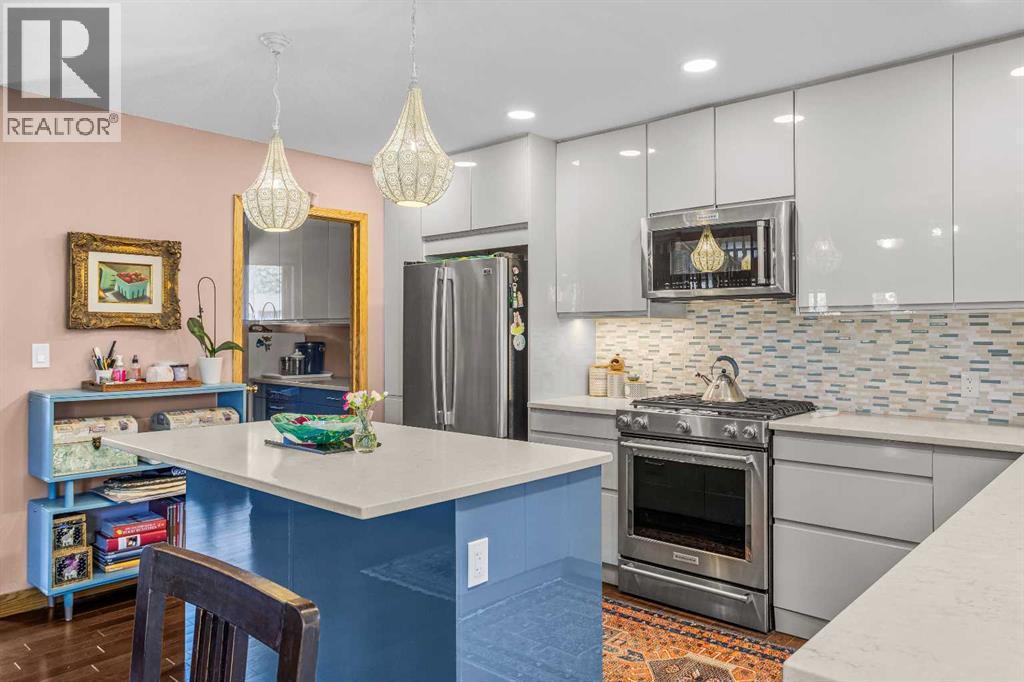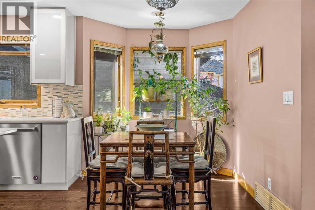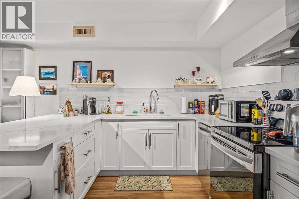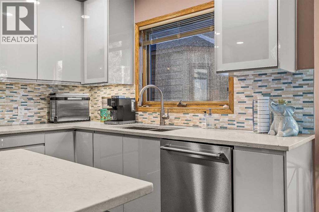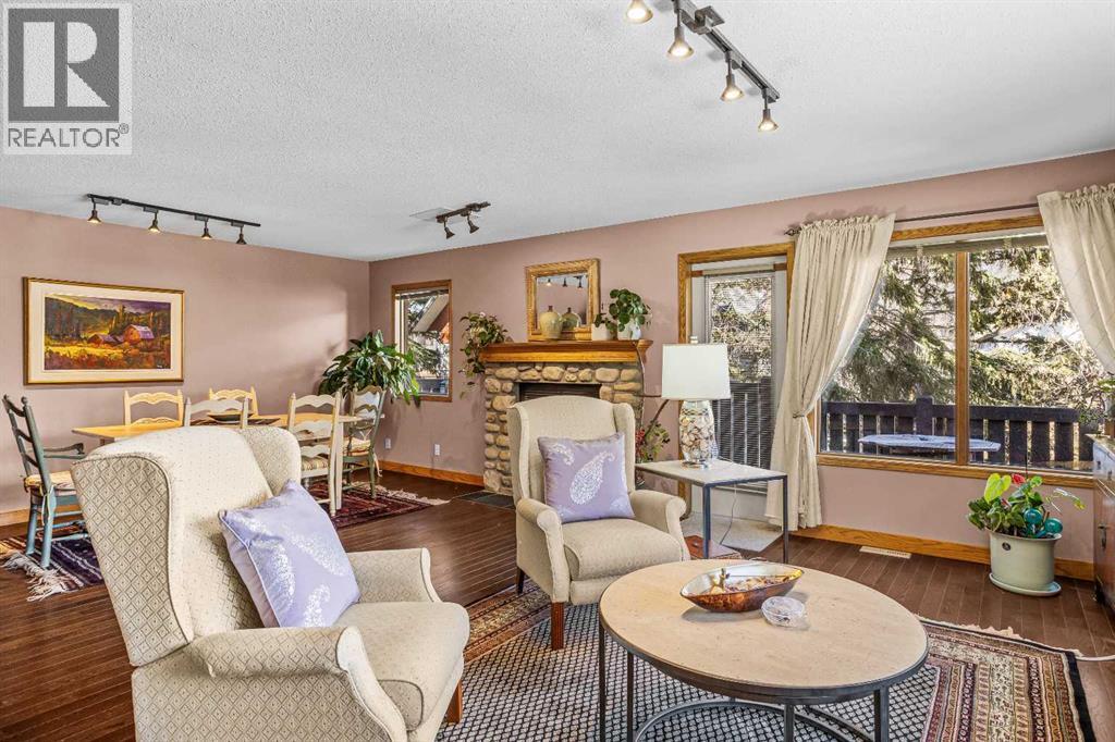 Welcome to this well-appointed half duplex, ideally located just minutes from downtown Banff.Offering 5 bedrooms and 4 bathrooms, this thoughtfully designed home delivers exceptional space and versatility, ideal for families, multi-generational living, or investment potential.The main living space features an elegant open-concept layout, highlighted by an updated kitchen with stainless steel appliances, a large island for gathering, and ample storage throughout. An adjoining laundry room with matching cabinetry adds even more functionality. Just off the kitchen, a cozy living area offers a flexible space for relaxing or working from home, while the formal living and dining area is filled with natural light, capturing beautiful mountain views and anchored by a wood-burning fireplace. From here, step out onto the spacious deck—perfect for morning coffee, summer barbecues, and taking in the views of Cascade Mountain.Upstairs, you’ll find two spacious bedrooms with walk-in closets, a full 4-piece bathroom, and a generous primary retreat featuring a large walk-in closet and 5-piece ensuite with fireplace. Large windows throughout all bedrooms fill the spaces with natural light.The lower level suite offers a bright and functional living space with its own kitchen, stainless steel appliances, in-suite laundry, and ample storage. Large windows bring in plenty of natural light, complementing the open-concept living and dining area, two bedrooms, and a 3-piece bathroom. With a separate entrance, this level is ideal for multi-generational living or added versatility.Outside, the fully fenced yard features low-maintenance landscaping, a private patio for gathering with friends, and an exterior storage shed—creating a comfortable and functional outdoor space to enjoy. (id:6769)