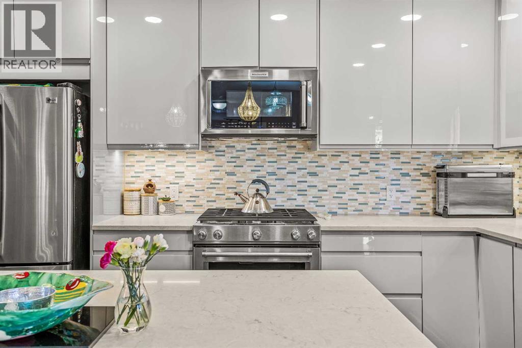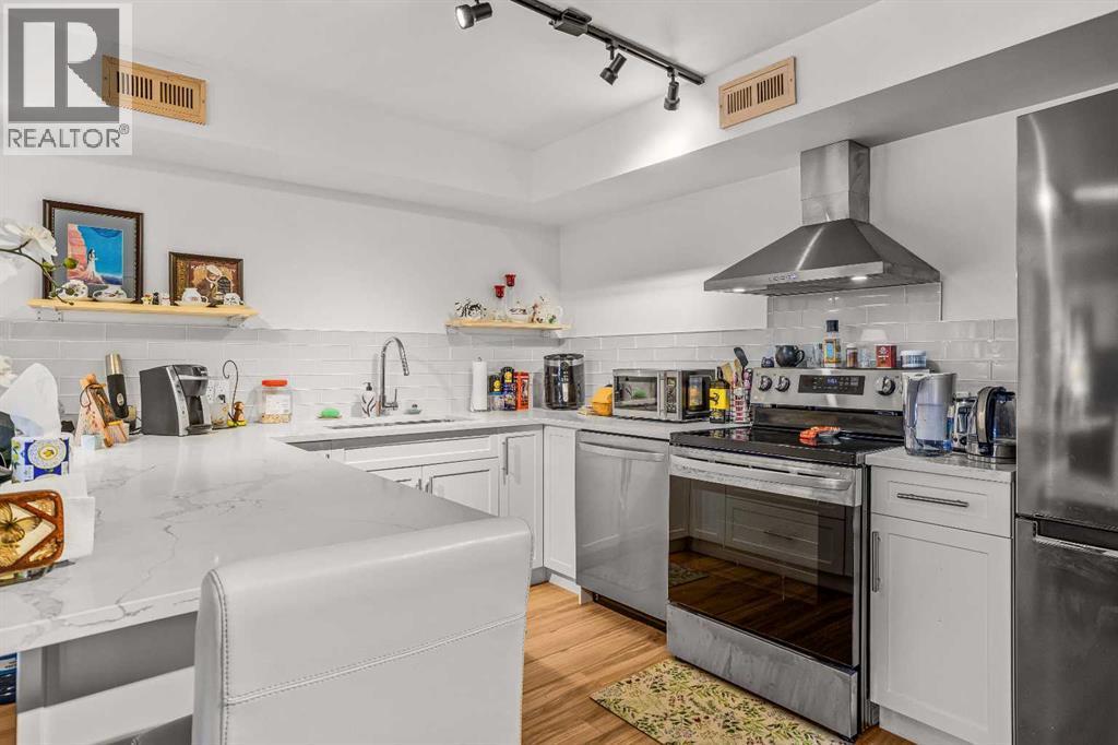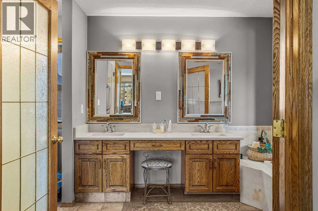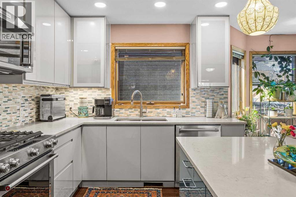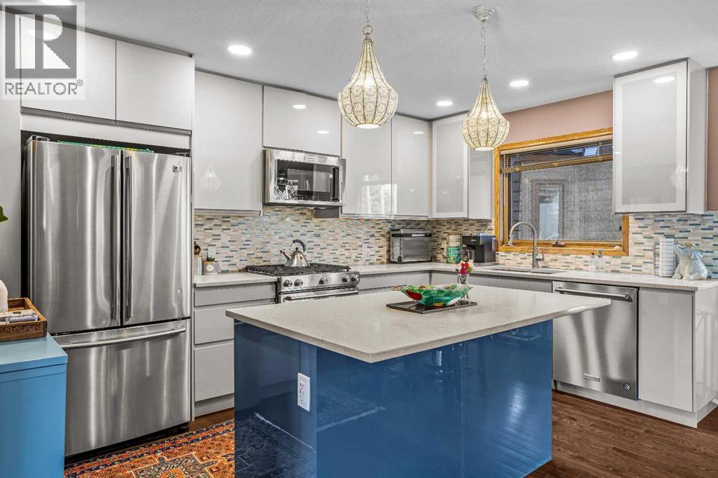 Welcome to this well-appointed half duplex, ideally located just minutes from downtown Banff.Offering 5 bedrooms and 4 bathrooms, this thoughtfully designed home delivers exceptional space and versatility, ideal for families, multi-generational living, or investment potential.The main living space features an elegant open-concept layout, highlighted by an updated kitchen with stainless steel appliances, a large island for gathering, and ample storage throughout. An adjoining laundry room with matching cabinetry adds even more functionality. Just off the kitchen, a cozy living area offers a flexible space for relaxing or working from home, while the formal living and dining area is filled with natural light, capturing beautiful mountain views and anchored by a wood-burning fireplace. From here, step out onto the spacious deck—perfect for morning coffee, summer barbecues, and taking in the views of Cascade Mountain.Upstairs, you’ll find two spacious bedrooms with walk-in closets, a full 4-piece bathroom, and a generous primary retreat featuring a large walk-in closet and 5-piece ensuite with fireplace. Large windows throughout all bedrooms fill the spaces with natural light.The lower level suite offers a bright and functional living space with its own kitchen, stainless steel appliances, in-suite laundry, and ample storage. Large windows bring in plenty of natural light, complementing the open-concept living and dining area, two bedrooms, and a 3-piece bathroom. With a separate entrance, this level is ideal for multi-generational living or added versatility.Outside, the fully fenced yard features low-maintenance landscaping, a private patio for gathering with friends, and an exterior storage shed—creating a comfortable and functional outdoor space to enjoy. (id:6769)