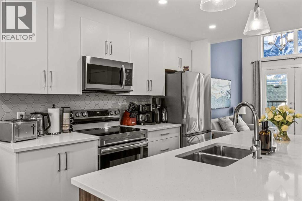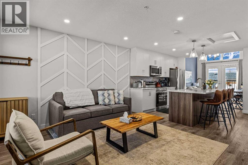 This mountain retreat is perfectly located just minutes from Canmore and the Banff National Park Gateway, offering an ideal blend of adventure and relaxation. This modern 2 bedroom, 2.5 bathroom escape is thoughtfully designed on two levels and showcases a contemporary open concept layout with stainless steel appliances, quartz countertops, and stylish finishes throughout. Thoughtfully upgraded and offered with a curated furnishing package, this turnkey property is designed for both comfort and entertaining. World class biking trails are right outside your door, with easy access to ski resorts and endless outdoor recreation. After a day of exploring, unwind in the complex’s hot tub and soak in the mountain lifestyle. Whether you are seeking a weekend getaway or a savvy investment, this property is short term rental approved on platforms like Airbnb and VRBO, offering excellent income potential. LIST PRICE INCLUDES GST. CONSULT YOUR ACCCOUNTANT ABOUT GST DEFERRAL. (id:6769)