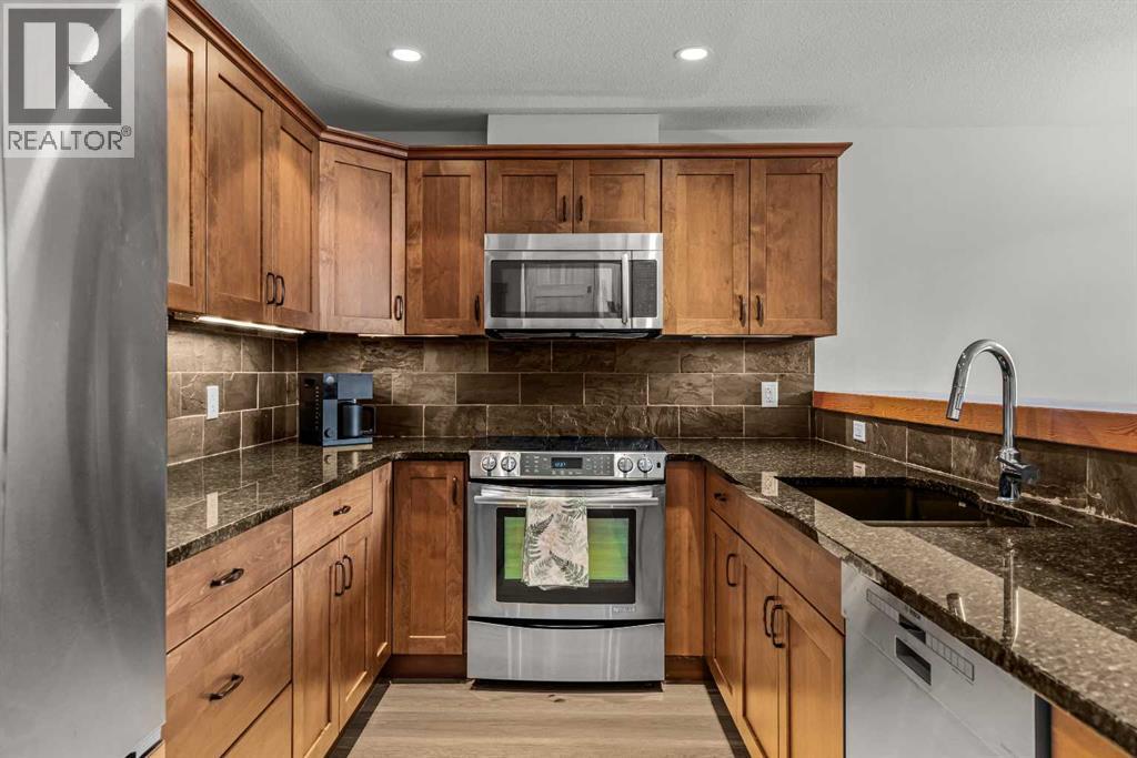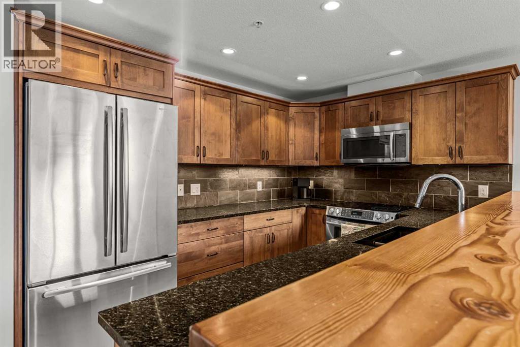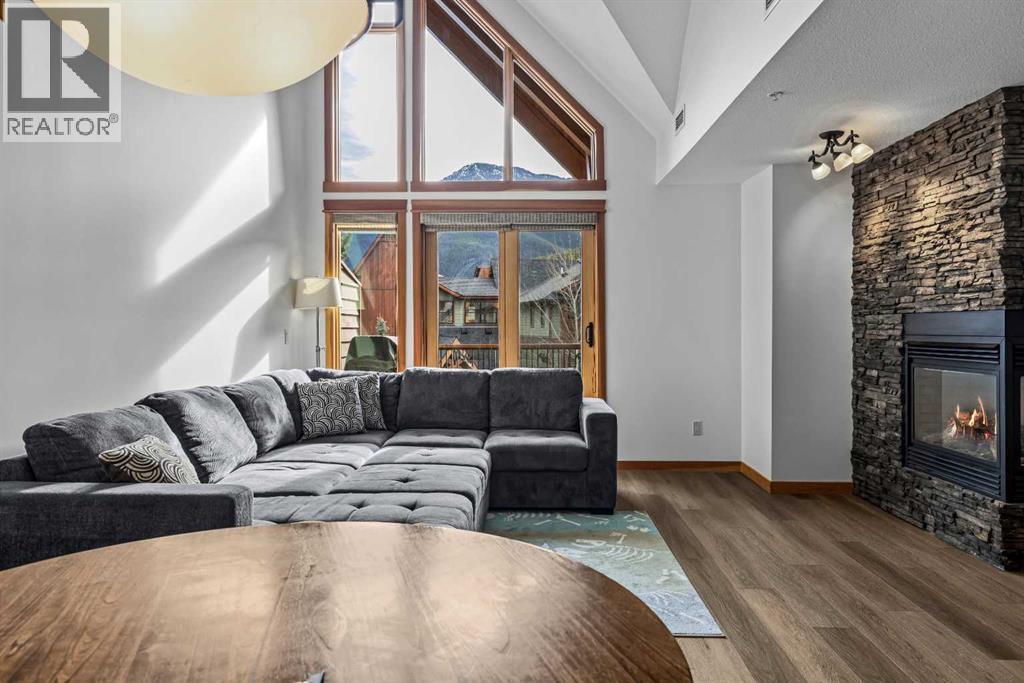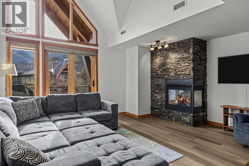 Welcome to an elevated mountain retreat perched on the top floor of Timberline Lodges. Crafted by Alpine Homes, this spacious 2-bedroom + loft, 2-bath residence offers 1,467 sq. ft. of refined living, recently refreshed with brand-new flooring throughout the main level and fresh, modern paint, making it truly move in ready.The open-concept main floor is anchored by a cozy fireplace for the winter months and Air-Conditioning to keep it cool in summer, the unit flows seamlessly through the kitchen and dining area, where expansive windows frame sweeping, exceptional mountain views. A comfortable main-level bedroom and full bath provide flexibility for guests or everyday living.Just a few steps up, the private primary suite features its own ensuite bath and walk in wardrobe, complemented by a versatile loft, ideal for a home office, media room, or additional living space. Multiple decks extend the living outdoors, offering the perfect vantage point to relax and take in the surrounding alpine scenery.Additional highlights include in-suite laundry, generous storage locker, TWO large underground parking stalls, and exclusive access to the Timberline owners’ clubhouse, featuring a swimming pool, hot tub, steam room, fitness center, and theatre. Ideally located close to world-class hiking and outdoor recreation, this home delivers exceptional lifestyle value in a premier mountain setting. (id:6769)