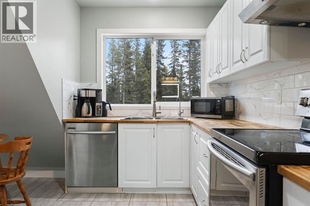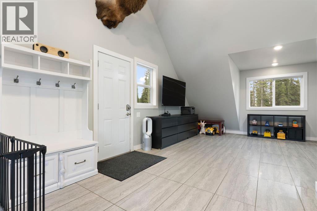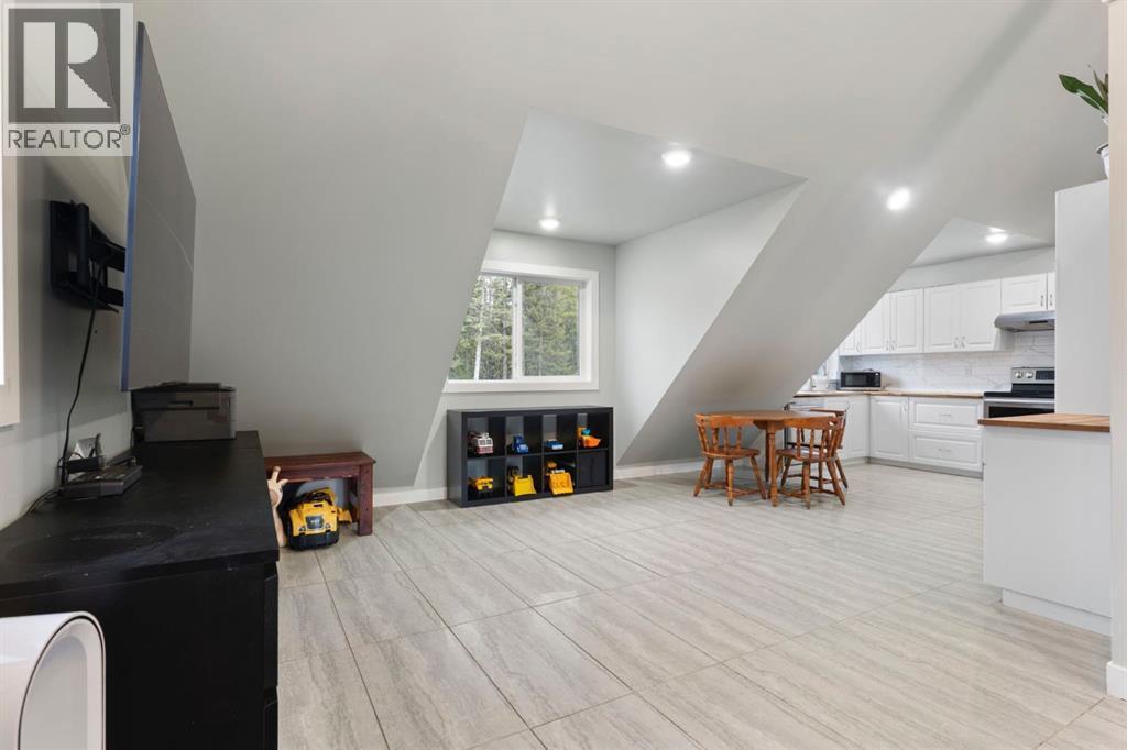 Escape to your own private retreat on this exceptional acreage with easy access to Crown land, offering unmatched privacy, endless recreation, and true Alberta wilderness right out your back gate. Surrounded by mature trees with open pasture areas and a horse run-in shed already in place, this property is nicely set up for equestrian use, outdoor enthusiasts, or those simply seeking space, serenity, and direct access to nature. The main residence offers over 800 sq ft above grade with a bright, lofty layout designed for future expansion and comfortable country living. Large windows frame peaceful treed views, while the open living and dining areas and the freestanding wood-burning stove create a warm and inviting atmosphere. The kitchen features crisp white cabinetry, warm butcher block countertops, stainless steel appliances, and a modern tile backsplash with natural light that pours in through large windows overlooking the drive and surrounding trees. On the lower level, the impressive, oversized garage space provides substantial room for vehicles, equipment, toys, or workshop use, ideal for hobbyists, trades, or recreational storage. With established infrastructure, usable land, and direct Crown land access for riding, quadding, hiking, and exploring, this is a rare opportunity to secure a truly versatile acreage property. (id:6769)