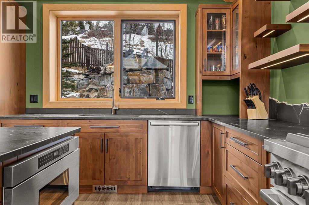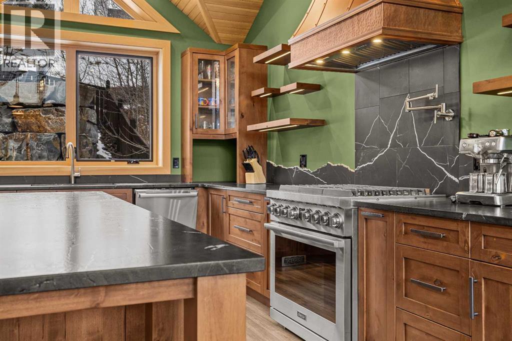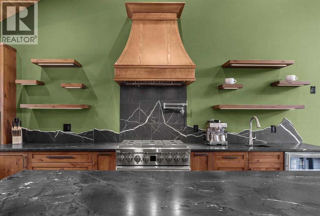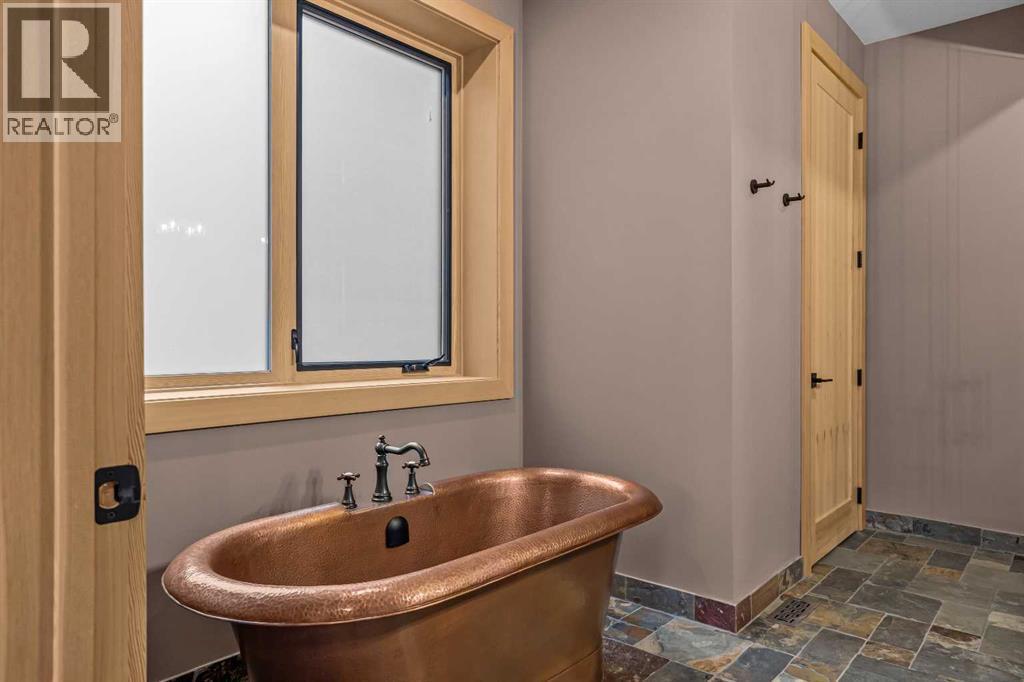 Positioned at the top of a quiet cul-de-sac, 104 Rummel Place captures elevated Bow Valley views in one of Canmore’s most peaceful residential settings.This 4-bedroom, 4-bathroom custom home blends privacy, scale, and thoughtful design anchored by a triple-car garage with exceptional storage capacity.Vaulted ceilings frame the surrounding mountain and valley views, creating a dramatic yet welcoming upper-level living space. Expansive windows draw natural light throughout, while multiple outdoor patios and balconies offer seamless indoor-outdoor living.The backyard is truly exceptional fully fenced and thoughtfully terraced with multiple lounging areas, a covered hot tub retreat, fire pit, and a private viewing platform perched above the valley an ideal vantage point to take in Canmore’s landscape.The kitchen is designed for entertaining, featuring a large island, gas range, prep sink, and generous workspace. The main level includes a spacious primary suite complete with a walk-in closet and a striking copper bathtub in the ensuite a distinctive design feature that elevates the space. Two additional bedrooms offer direct access to outdoor areas.The lower level includes a recreation room, fourth bedroom, and full bathroom, creating flexibility for guests, family, or additional living space.Additional features include in-floor heat throughout, heated driveway and steps, solar panels, elevator access to all levels, and rough-in for a future sauna or Nordic spa.This is a home defined by its position elevated, private, and immersed in nature while remaining just minutes from downtown Canmore. (id:6769)