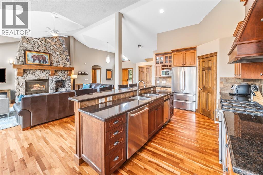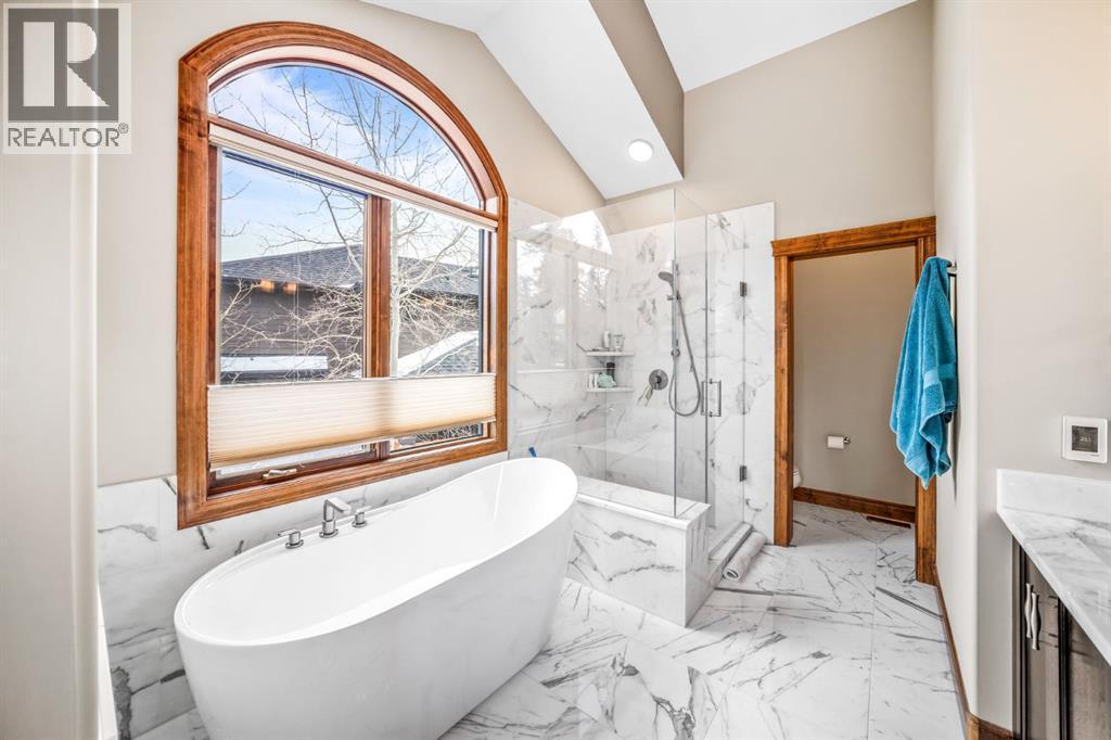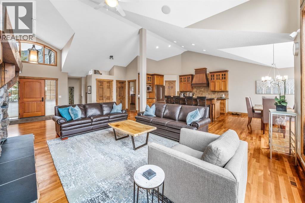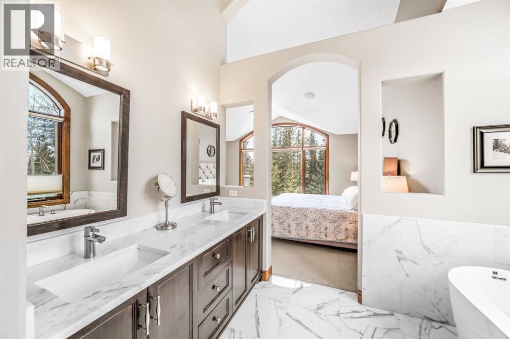 Set within a mature and fully completed enclave of Three Sisters, 282 Miksow Close is a rare walkout bungalow offering over 4,000 square feet of refined mountain living—designed to provide the ease of single-level living without compromising on space for family and guests.Wake each morning in the main-floor primary suite, where expansive windows frame sweeping mountain vistas. The spa-inspired ensuite has been thoughtfully updated, creating a calm and restorative retreat. A second bedroom on the main level offers flexibility for guests or den space, while the open-concept great room, kitchen, and dining area capture dramatic views up the valley toward Banff National Park. Gather around the fire after a day outdoors or step onto the generous outdoor living spaces to take in the ever-changing alpine light.Above, a lofted upper level with its own private balcony looks directly toward Canmore’s iconic Three Sisters peaks—an inspiring setting for a home office, studio, or fitness space.The walkout lower level extends the home’s versatility with a spacious family room, two additional guest bedrooms, and a full bathroom—ideal for visiting family or multi-generational living. Updated guest bathrooms add a contemporary touch, blending comfort with understated sophistication.With trails at your doorstep, cycle along the Bow River into downtown Canmore, stroll to the local bistro, or spend weekends skiing, hiking, and golfing. Privately positioned on a quiet street where construction is complete, this is a home that pairs Rocky Mountain grandeur with thoughtful updates—crafted for generations to gather and enjoy. (id:6769)
