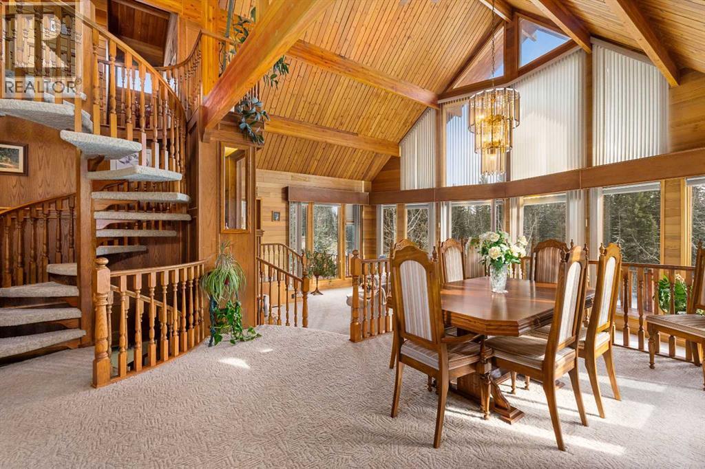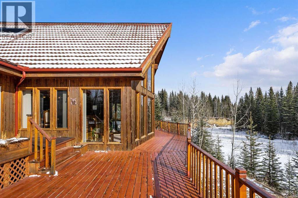 A rare opportunity to own 80 extraordinary acres with direct river access (Fallen Timber Creek) and breathtaking valley views northwest of Calgary. Set in an unforgettable natural setting, this remarkable property offers over 4,000 sq. ft. of developed living space across three levels, Including a spacious walkout family room. A large balcony overlooking the river and a seamless connection to the landscape from every angle.Designed for both comfort and function, the property includes a double detached garage, an additional single garage, and an impressive 48' x 32' workshop, with a yard space that allows ample room to pull in a trailer and turn around with ease. Private hiking and quad trails weave through the land, while Crown land only a few quarters to the west adds even more freedom and recreational access. Scenic, private, and exceptionally well equipped, this is a river property of rare quality and lasting appeal. (id:6769)