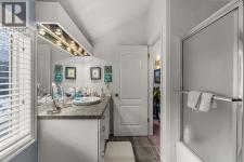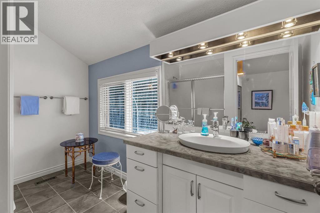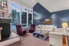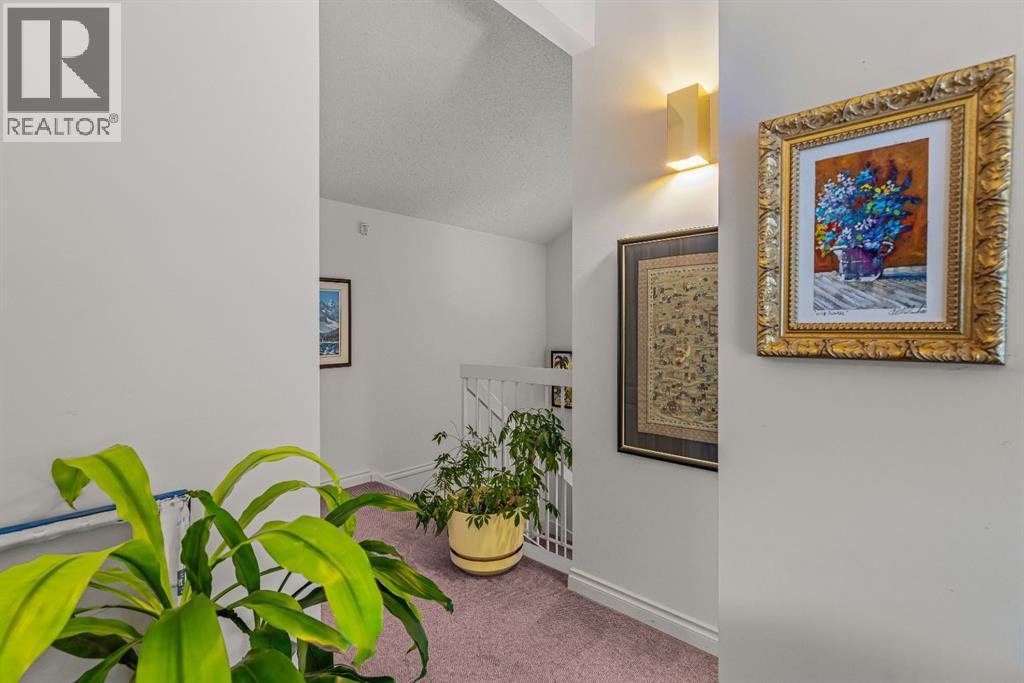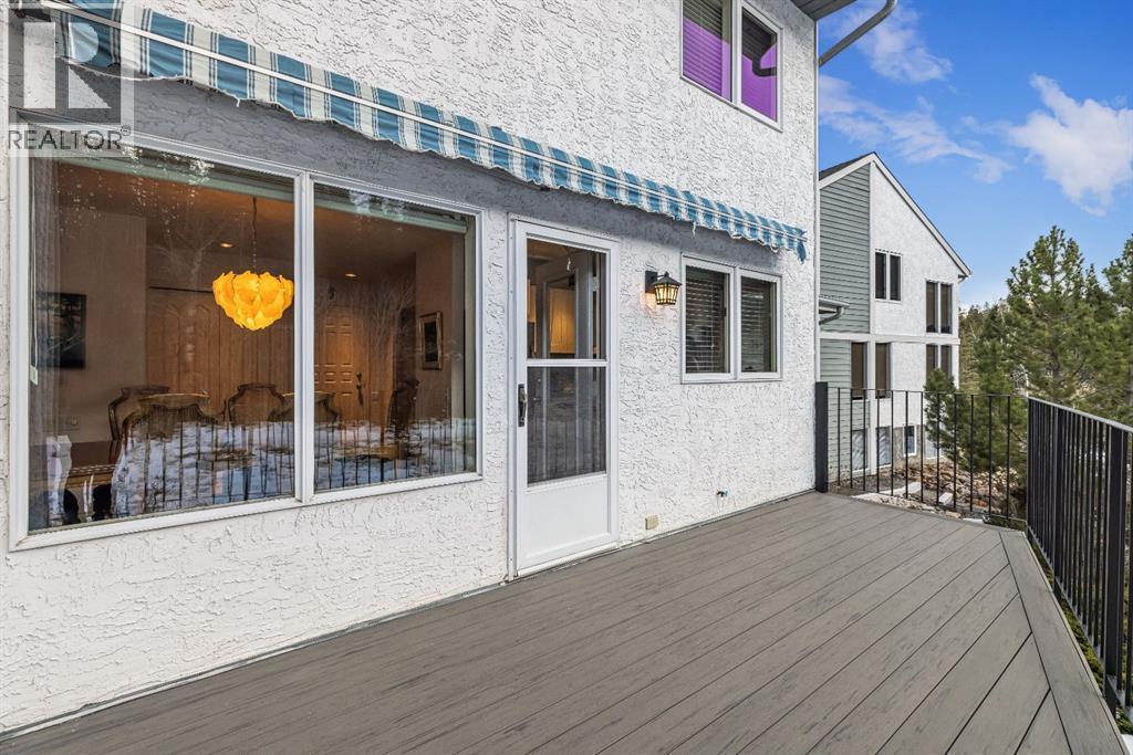 Properties within this limited collection of residences are rarely available, a clear indication of the desirability and long-term ownership in this location. Offering over 2,200 sq ft of well-designed living space, this 3-bedroom, 3-bathroom home backs directly onto unique green space and showcases exceptional south-facing mountain views, combining privacy with a strong connection to its natural surroundings. The main floor is configured for convenient main-floor living, featuring a spacious primary bedroom, 3-piece bathroom, kitchen, dining area, and living room. Vaulted ceilings and expansive windows in the living room provide abundant natural light and frame the surrounding landscape. A slate entry foyer creates a strong first impression, while the adjacent deck extends the living space outdoors and offers a sunny setting to enjoy the views. The upper level includes two additional bedrooms and a 4-piece bathroom, offering flexibility for family or guests.The fully developed basement adds valuable additional space with a recreation room, 3-piece bathroom, laundry area, storage, and utility room. Additional highlights include a covered carport and a highly desirable setting backing onto open green space. This is a rare opportunity to secure a home in a tightly held, highly sought-after community. (id:6769)