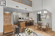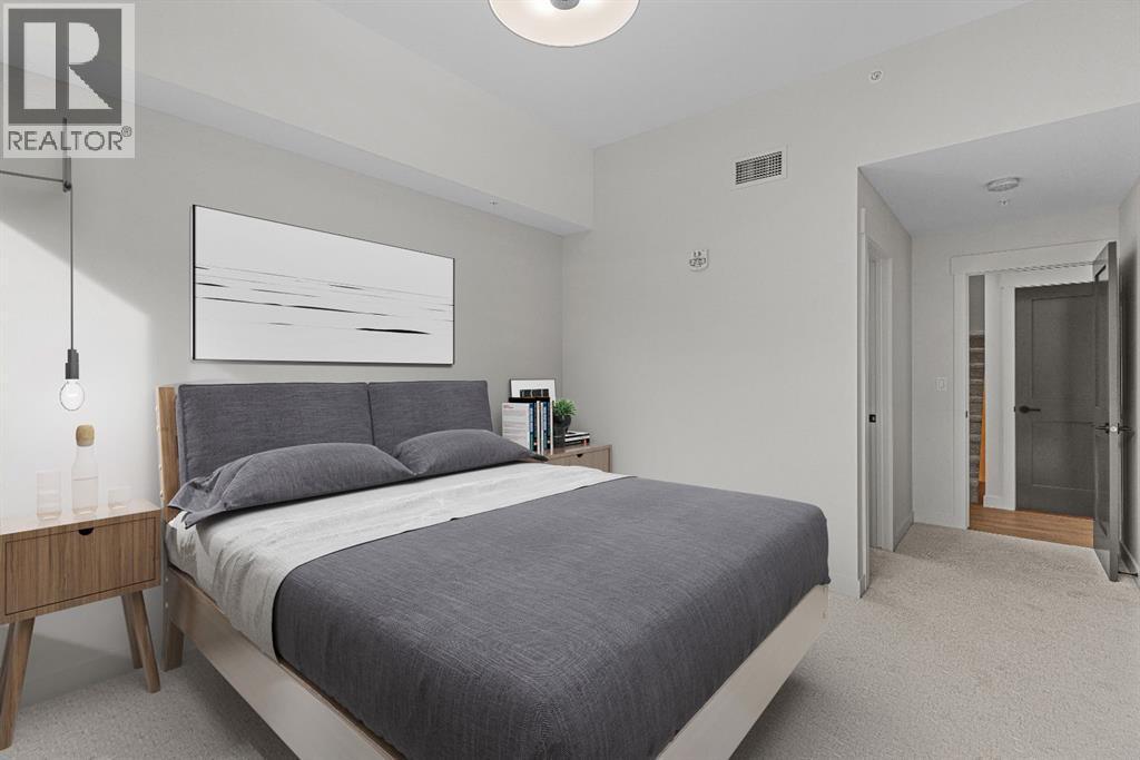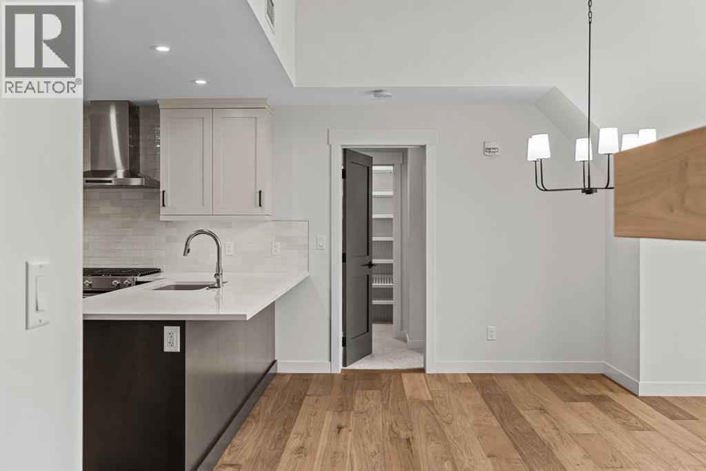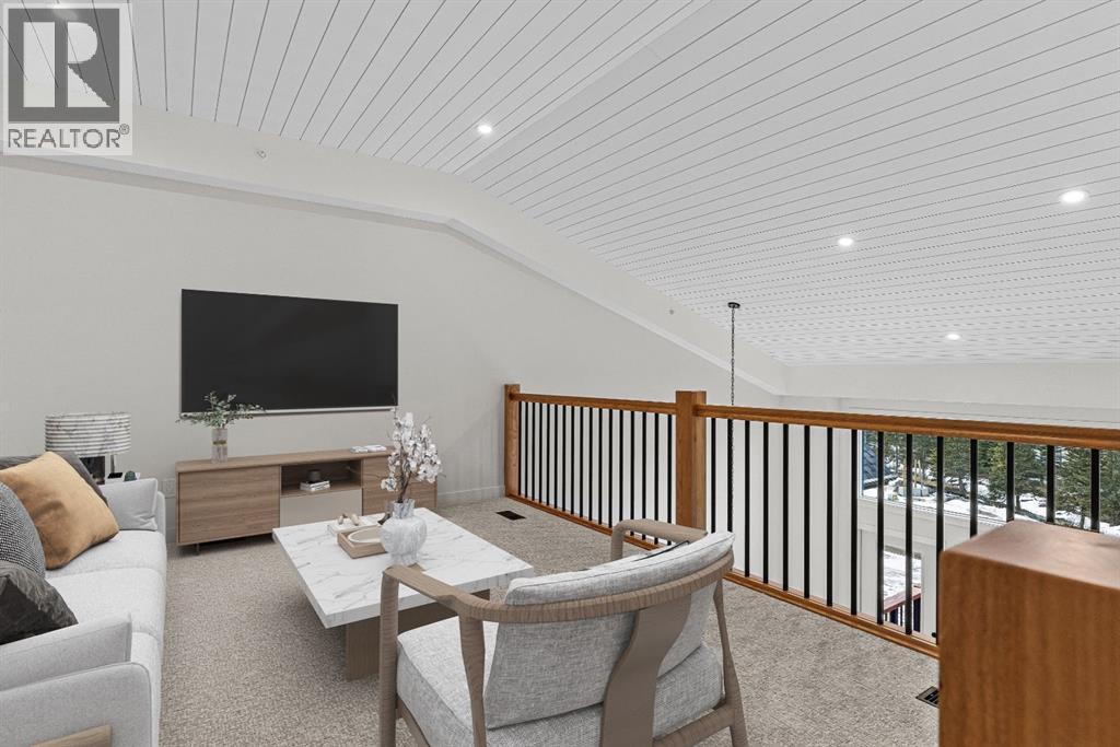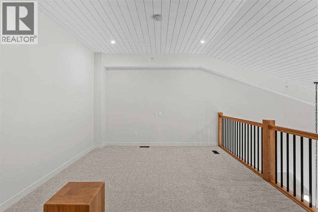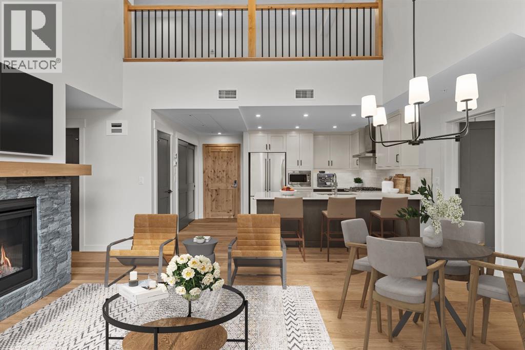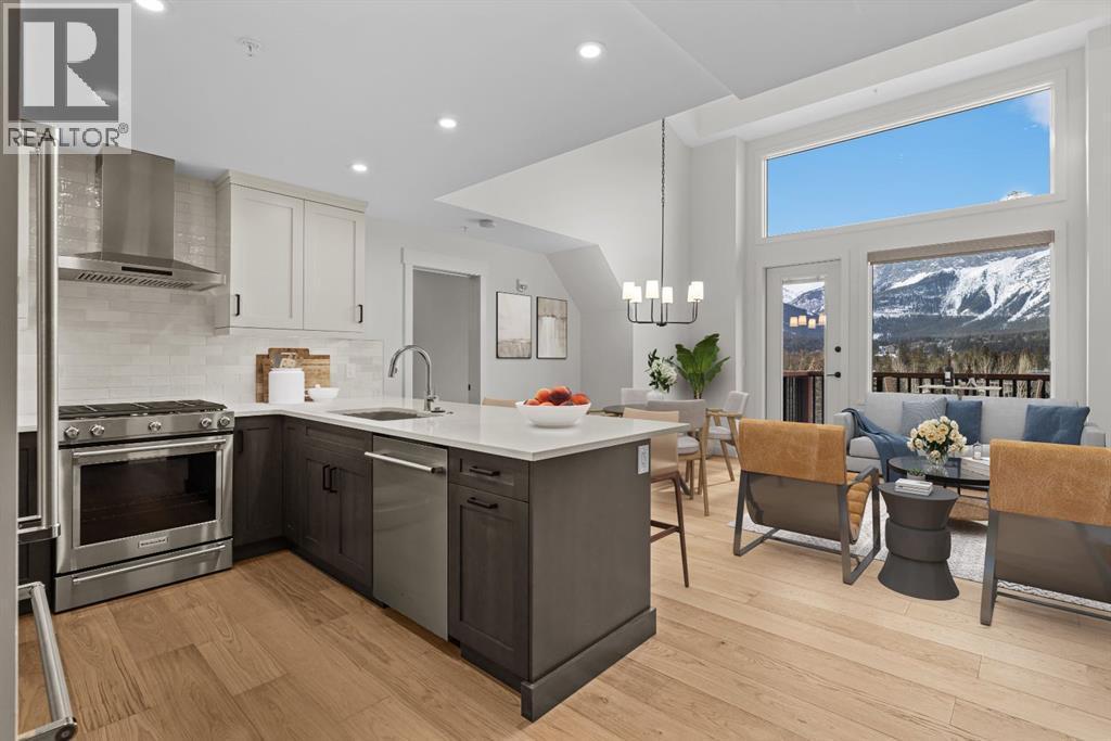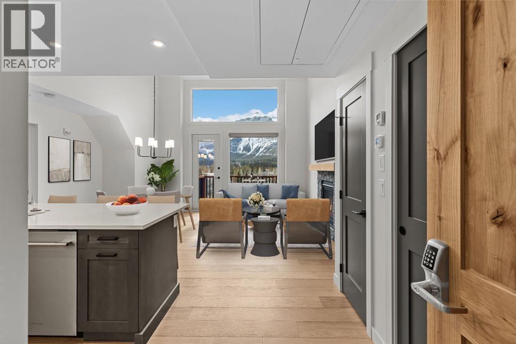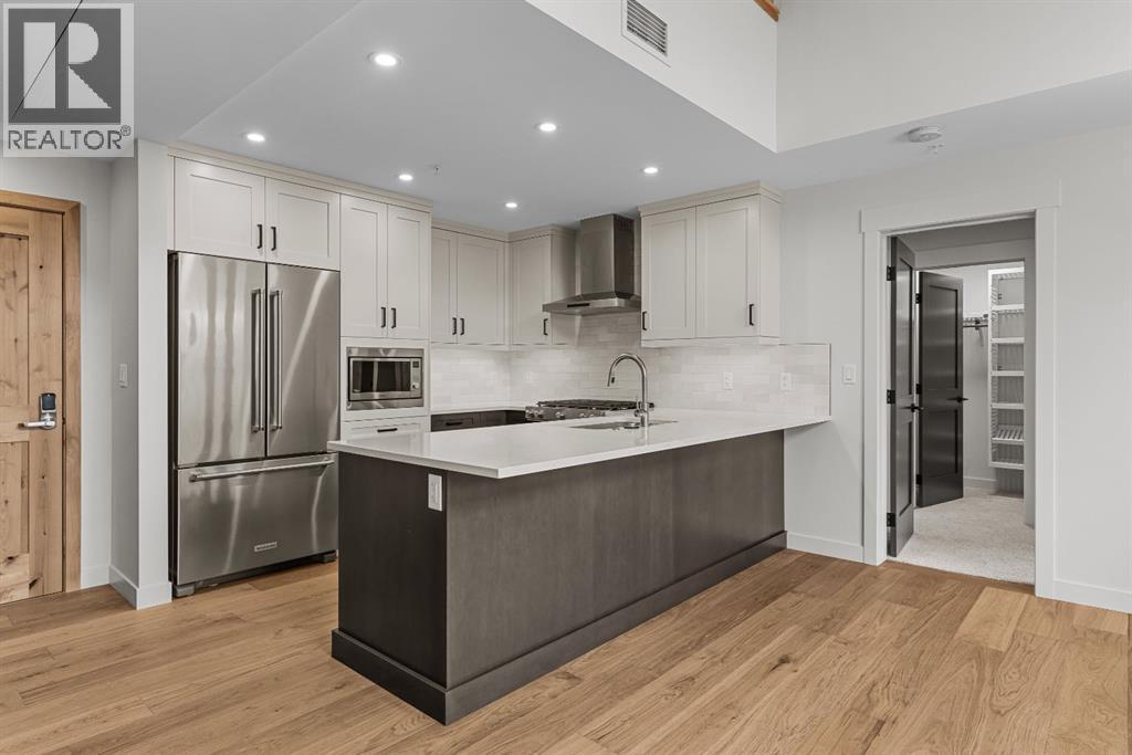 Perched at the top of Spring Creek’s newest building, Penthouse 405 at Black Swift Lodge delivers a rare mix of privacy, modern mountain design, and incredible west-facing mountain views in one of Canmore’s most walkable neighbourhoods. Brand new and move-in ready, it offers the comfort of top-quality construction, plus the added confidence of new home warranty coverage.This 2 bedroom, 2 bathroom penthouse with loft features a bright, open-concept layout highlighted by a vaulted wood ceiling, a cozy fireplace, and seamless access to a view deck made for mountain-air downtime. The kitchen is both stylish and functional, with KitchenAid stainless steel appliances, including a gas range, quartz countertops, and solid wood cabinetry.The primary suite offers more mountain vistas, a walk-in closet and a deluxe 5-piece ensuite, while the second bedroom enjoys beautiful views, a second walk-in closet and convenient access to a full bath nearby. Upstairs, the expansive loft overlooking the great room is perfectly sized as a multi-use space, ideal for a home office plus a second lounge or media area.Owners at Black Swift enjoy great amenities including a lovely courtyard hot tub with views of Ha Ling and the Rundle Range, along with a fitness room. The Spring Creek lifestyle is a big part of what people love here, with creekside paths, local shops, and standout dining at the Malcolm Hotel and Bridgette Bar.Black Swift Lodge raises the bar with geothermal heating and cooling, as well as solar panels. A fabulous opportunity for those seeking a brand-new Canmore penthouse in Spring Creek, with views, walkability, and modern finishes in a fresh, low-maintenance package. Unit 405 includes 2 underground parking stalls and a storage locker. (id:6769)