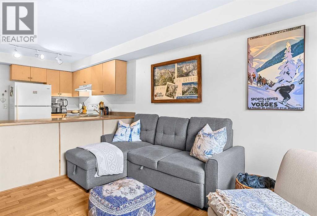 Bright, cozy, and full of natural light, 300–180 Kananaskis Way is a one-bedroom home that makes every square foot count. The open-concept layout connects the kitchen and living area, so you can cook, eat, or just enjoy a relaxing evening on the couch. The living room window fills the space with sunshine—perfect for morning coffee, an afternoon read, or just enjoying a cheerful spot to hang out.The bedroom sits just off the main living area, giving you a private retreat while staying part of the open flow. There’s also exterior storage for all your mountain gear so you can make the most of mountain life.Step outside, and you’re close to walking trails, playground, and an outdoor basketball court. Downtown Canmore is about a 10-minute walk, so you can grab coffee, browse shops, or enjoy a meal without needing to drive. The FREE Canmore transit system has a stop just steps away, making it easy & very affordable to explore the valley.This space works for a lot of people—first-time buyers, someone looking for practical employee housing, or anyone who wants a low-maintenance home with personality. It’s bright, functional, and ready for you to move in and start living the Canmore life. Now is the time to start enjoying the mountains. (id:6769)