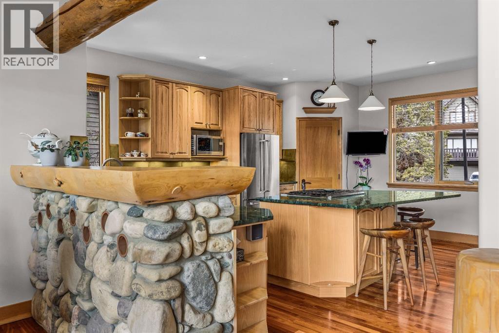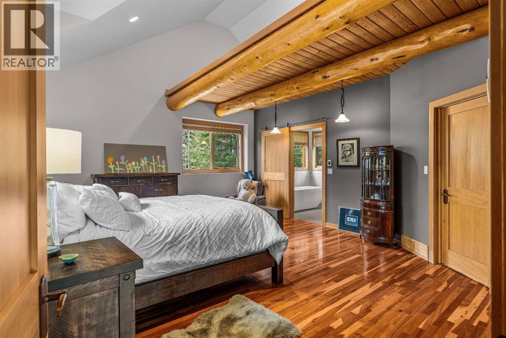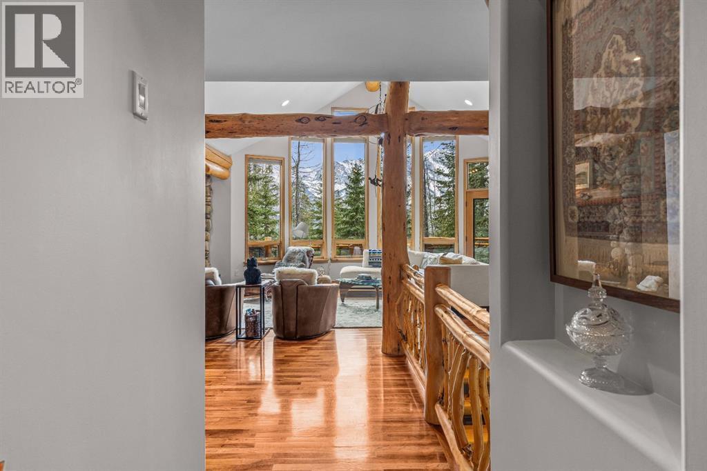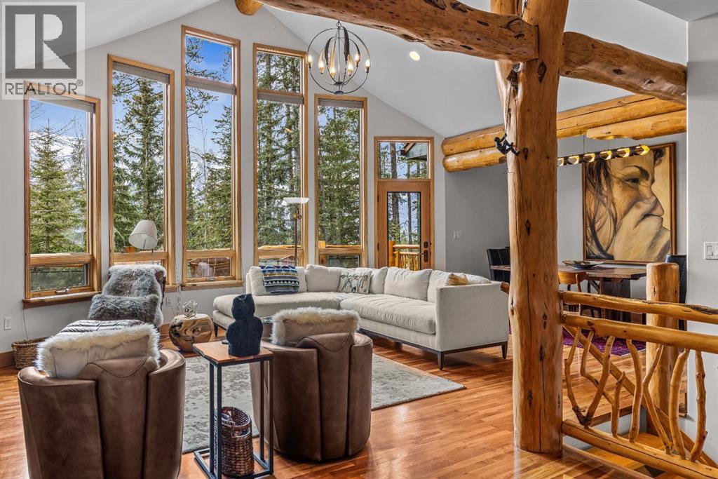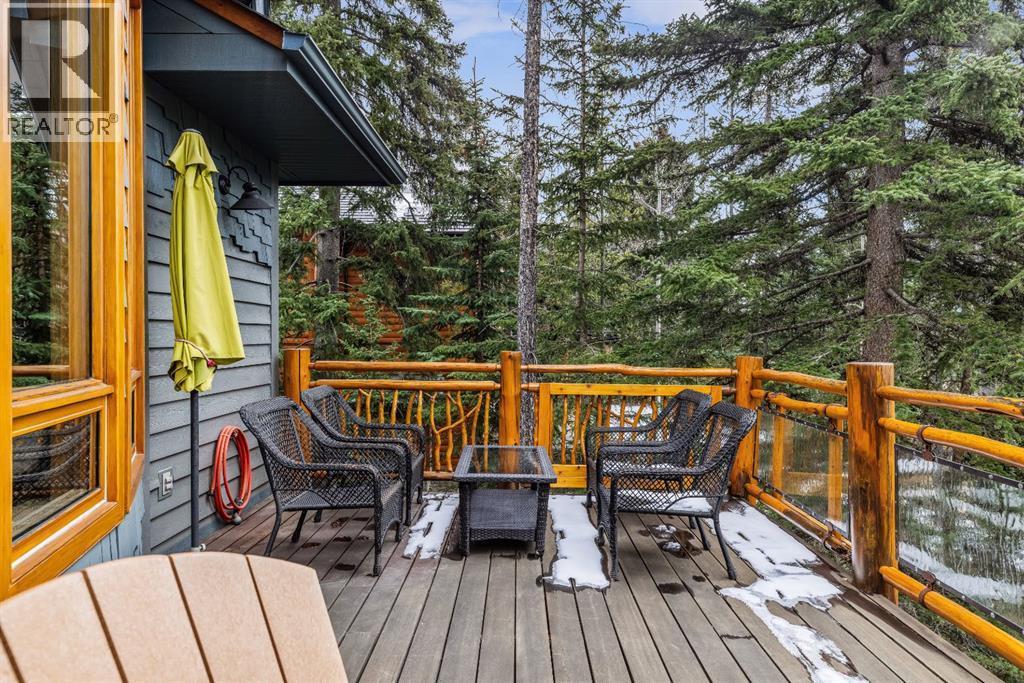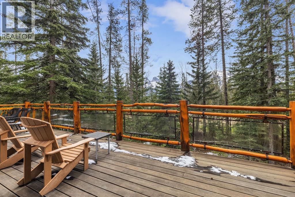 Perched along the ridge in Silvertip and backing directly onto the golf course, this beautifully crafted single-family home offers timeless mountain charm, privacy, and breathtaking views of the Three Sisters. Spanning over 2,800 square feet, the home showcases classic Canmore character with exposed log beams, vaulted ceilings, and warm finishes that create an inviting alpine atmosphere. The main level is designed for convenient one-floor living, featuring a bright, open-concept layout with seamless access to a large south-facing deck perfect for soaking in the sun and surrounding mountain vistas. Both bedrooms on this level include private ensuites, offering comfort and flexibility for owners and guests alike. The lower level expands the living space with a generous recreation room that walks out to a private, treed backyard. Here, you’ll find a peaceful setting complete with a patio, fire pit, and hot tub ideal for relaxing or entertaining year-round. Two additional bedrooms and a full bathroom complete this level, providing ample room for family and visitors. A double car garage and additional storage shed add practicality, while the home’s location on the Silvertip ridge offers a rare combination of tranquility, views, and direct access to world-class golf and mountain trails. A true Canmore mountain home, rich in character and perfectly positioned in one of the area’s most sought-after communities. (id:6769)